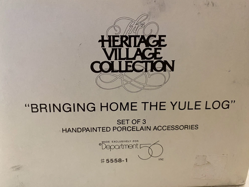 Dept. 56 Heritage Dickens Village 1991 Bringing Home The Yule Log #5558-1. Please see pictures for full description. Bin Y