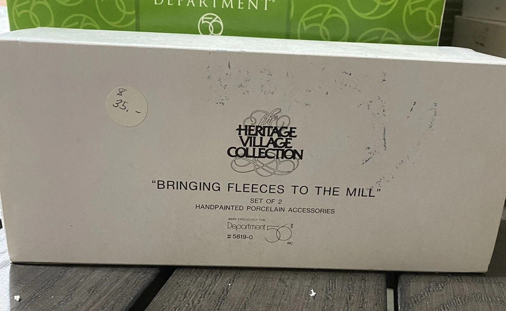 Dept 56 Heritage Village -BRINGING FLEECES TO THE MILL set of 2 #5819-0 Orig Box.