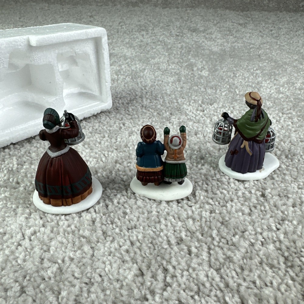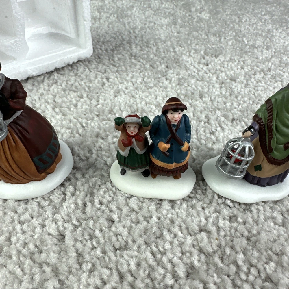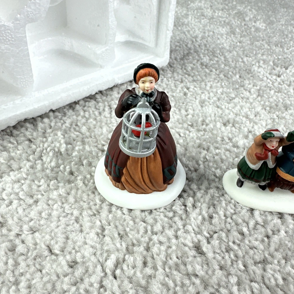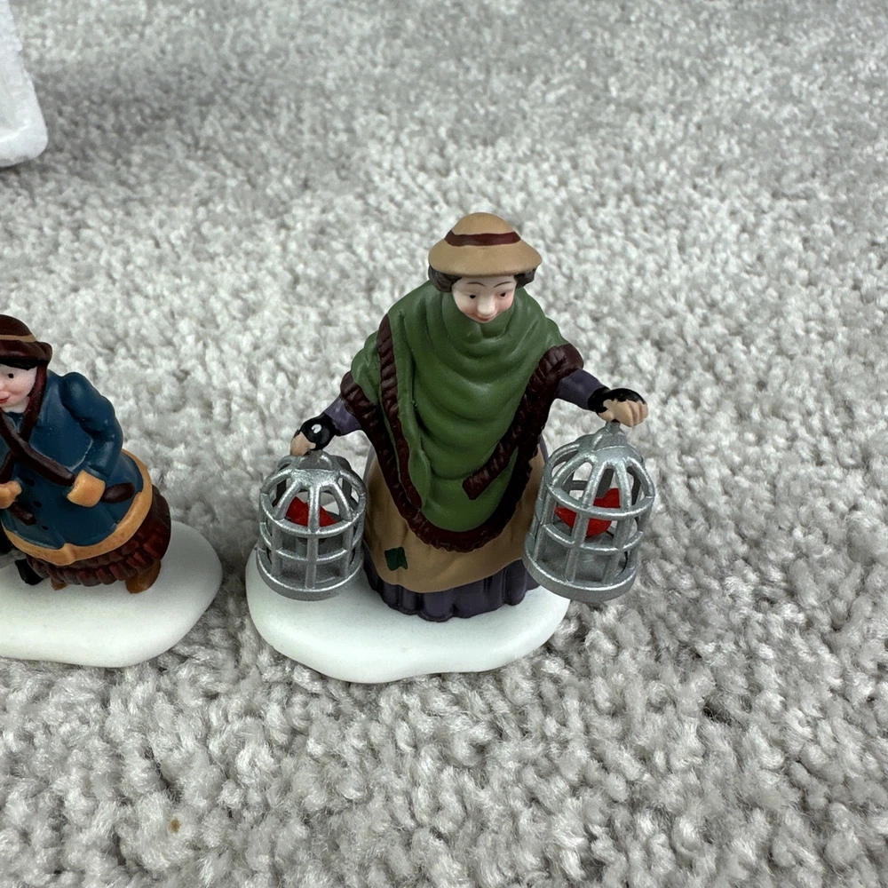 Enhance your Christmas Village display with the Dept. 56 Heritage Village The Bird Seller set of 3 porcelain figurines. Each intricately hand-painted piece depicts excited children and 2 women holding bird cages, embodying the vibrant spirit of the Victorian era. The set, manufactured between 1996 and 2001, adds a touch of Dickensian charm to any room, perfect for those who appreciate the warmth and detail of holiday traditions. Crafted from high-quality ceramic/porcelain, these small-sized figurines weigh in at just 6 oz, making them lightweight additions to your festive arrangement. They come boxed, ensuring safekeeping, and the multicolor finish highlights the intricate pattern of a woman selling a bird with a woman customer, a signature piece from the respected Department 56 brand. Celebrate the season with this delightful and timeless collection.