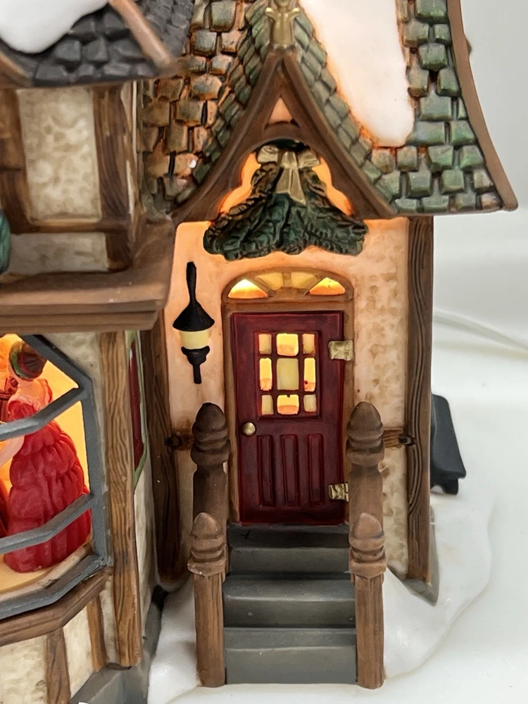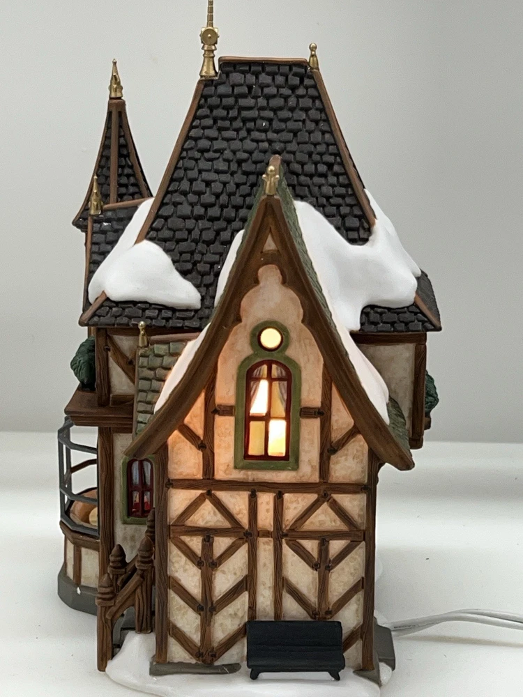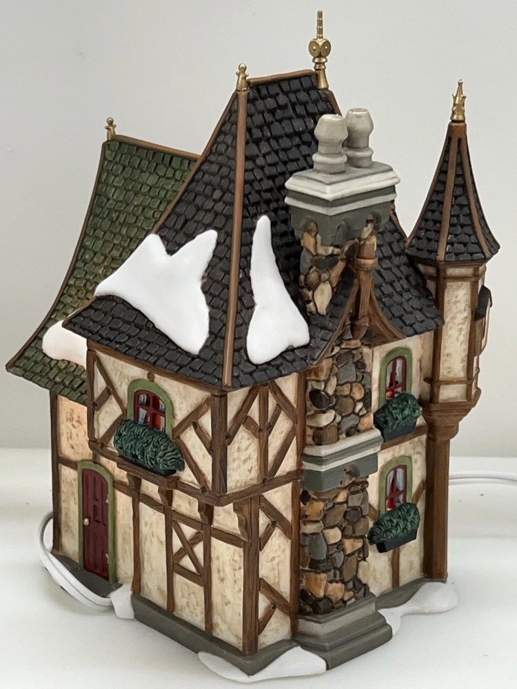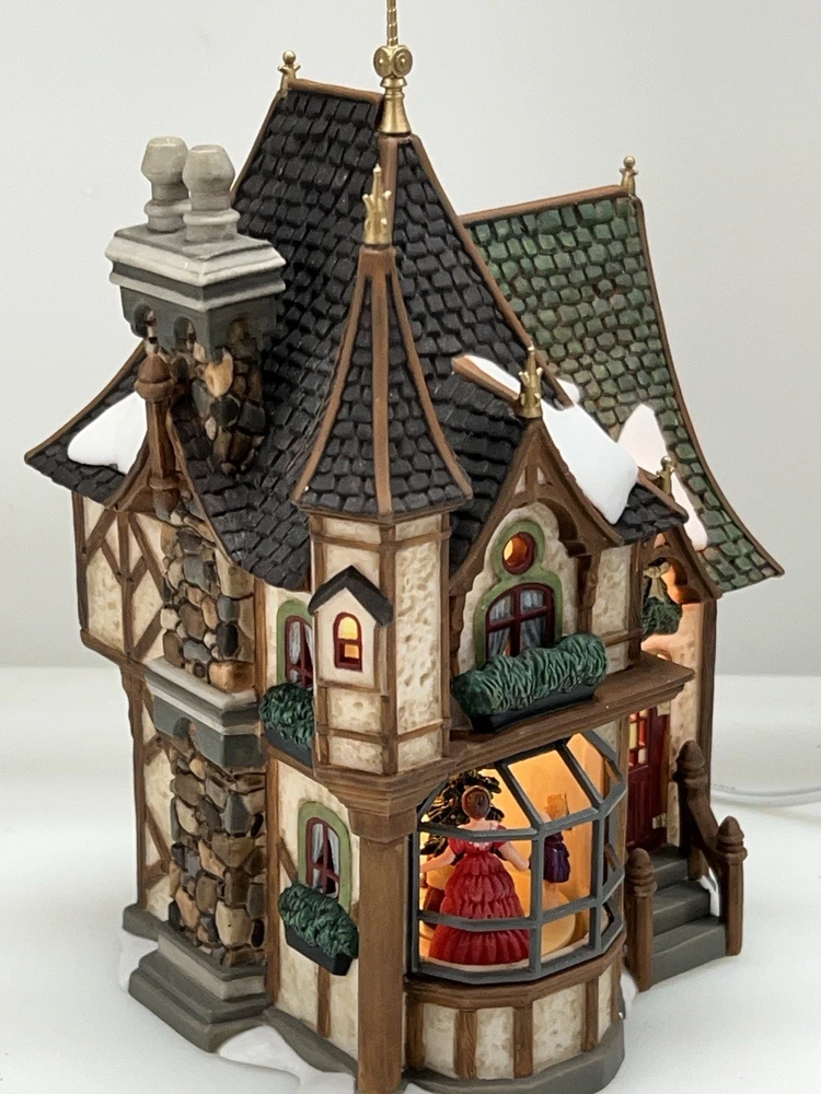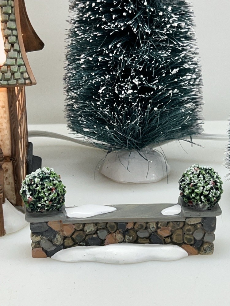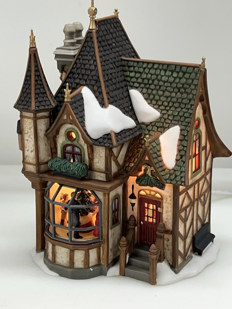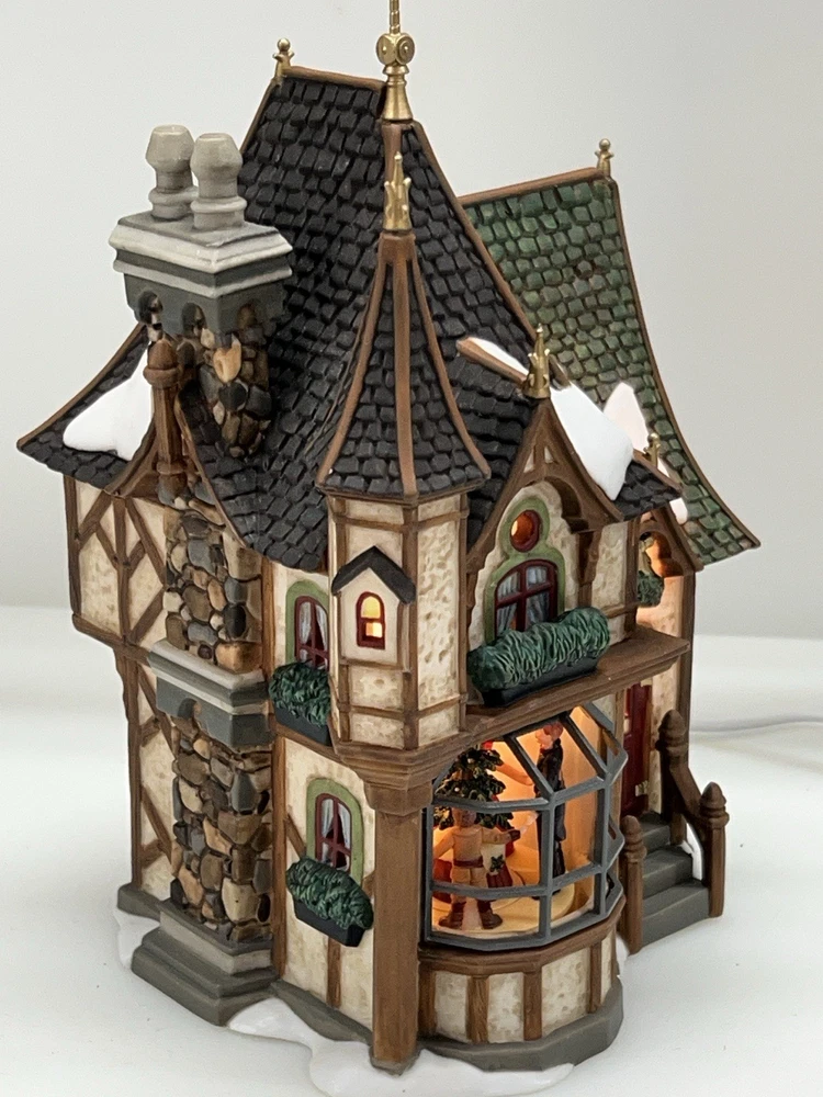This is a Department 56 "1 Royal Tree Court" Holiday Gift Set of 8, designed by Neilan Lund in 2002. The set features an asymmetrical, medium-sized, multi-colored porcelain village display, suitable for any room and occasion. The set includes 8 pieces, each measuring 8" in height and 5" in length and width, with a whimsical Victorian home pattern and lighted house character family. The set is an original, 21st century (2000-now) product, manufactured in China, and is part of the Dickens Village collection. The set is perfect for collectors and enthusiasts who enjoy seasonal, periods and styles, and novelty themes. 8 piece set in absolutely perfect condition: House Two river stone walls Two frosted topiaries Bare branch tree One bag fresh fallen snow One figurine Comes with all original packaging including cord and light Outer box is taped .