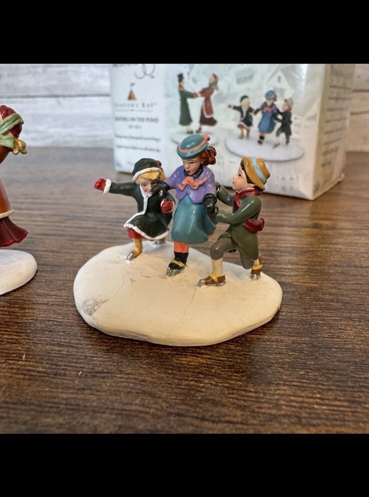Dept 56 Seasons Bay Skating on the Pond 1998 Christmas Village Figurine Set of 2