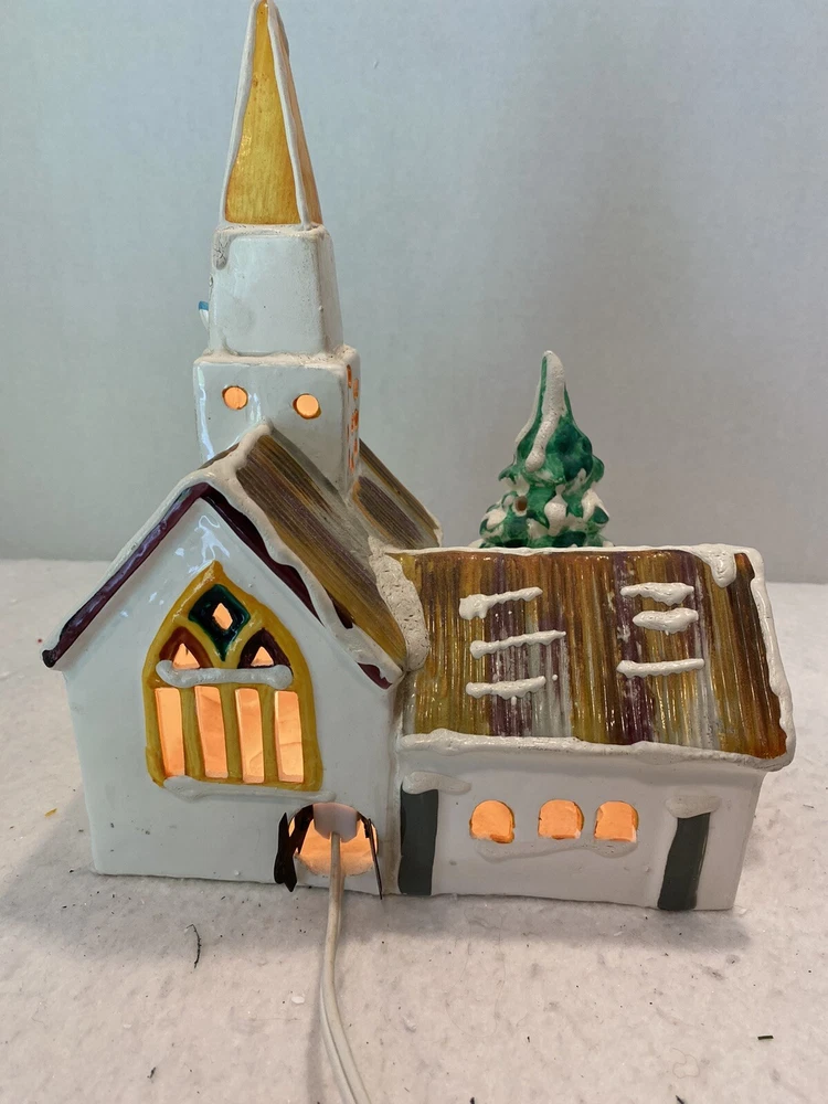This is in excellent preowned condition for a piece that is almost 50 years old. There is some cracking of paint due to age. Church will come with light cord. Original box not included. Dept 56 1st Original Snow Village Steepled Church 1976 Bluebird 50054 Vintage. Bin V