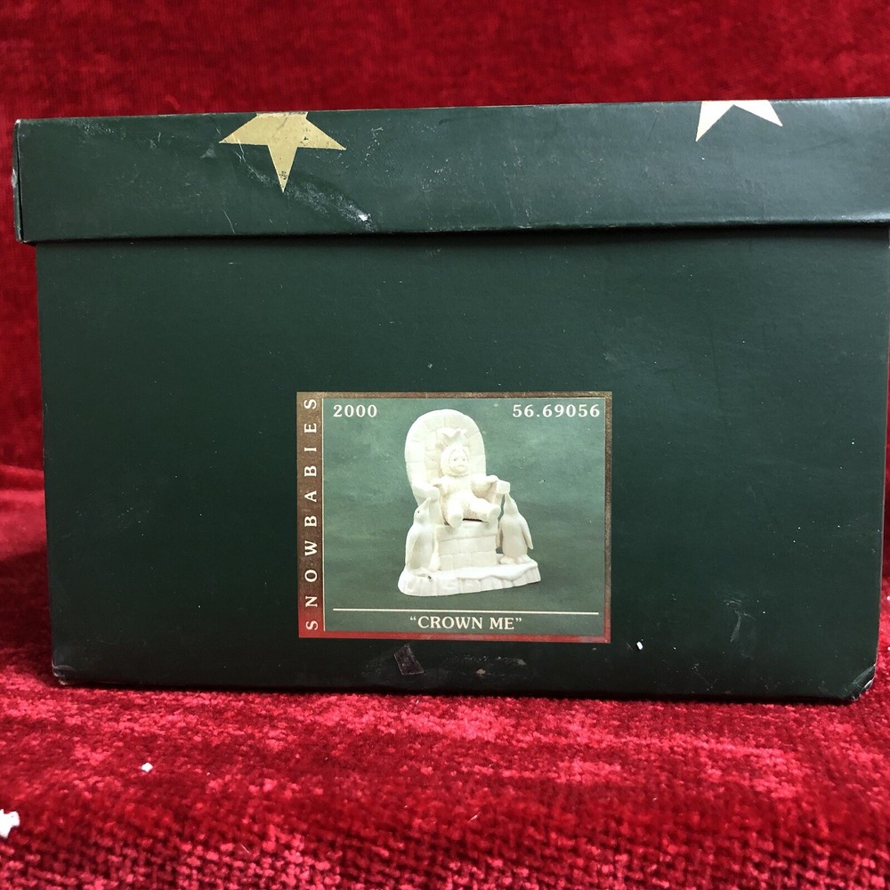 Crafted with care, the Department 56 Snowbabies "CROWN ME" Figurine is a charming piece that captures the essence of winter's innocence. Featuring the artistry of Kristi Jensen Pierro, this medium-sized bisque porcelain figurine is a testament to the beloved Snowbabies collection. It's a beige-hued representation of a child's dream, made with a matte finish that enhances its delicate features and texture.The "CROWN ME" figurine, item#69056, is a retired piece that comes boxed, ensuring it remains pristine over the years. Ideal for anyone who cherishes Christmas and winter themes, this original late 20th-century collectible is more than just a decoration—it's a snapshot of holiday traditions cherished by generations. Whether for a child or an adult, this Snowbaby strikes a nostalgic chord for the festive seasons of yesteryear. - - - - - - New (Old Stock) - Never used, exterior box somewhat weathered and rough.