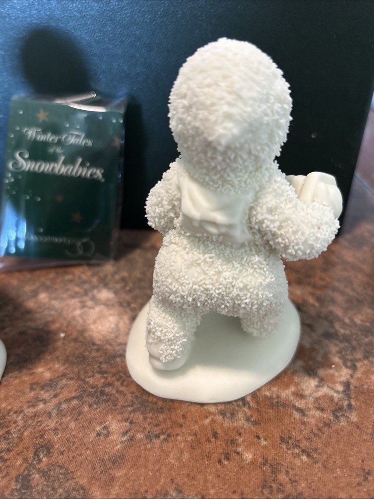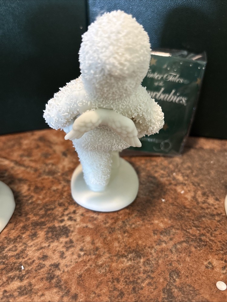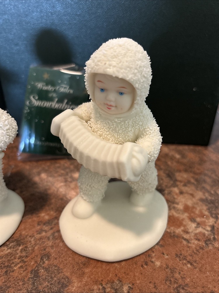 Add a touch of winter magic to your collection with the Department 56 Snowbabies "Dancing To A Tune" set of 3 figurines. Each piece showcases the charm and intricate detail that the Snowbabies line is known for, with angels adorned in bisque hues and textured finishes that evoke a sense of seasonal wonder. With the original packaging, these asymmetrical figurines are a testament to the traditional style and quality craftsmanship of the 1990s. Whether displayed on a mantle or as part of a larger Snowbabies ensemble, they're sure to be a delightful addition to any holiday decor.