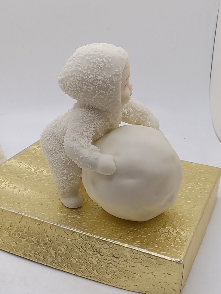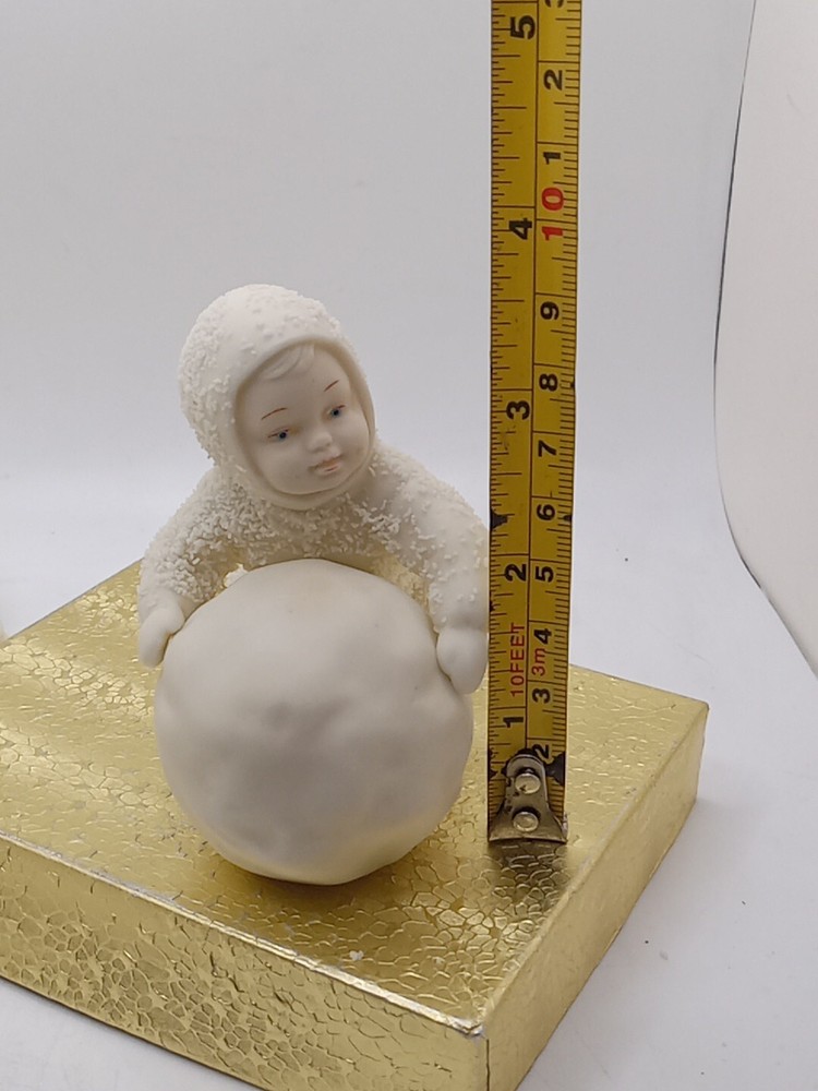 This adorable Snowbabies figurine from Department 56 depicts a baby happily making a snowman with a huge snowball. The intricately detailed figurine is perfect for any Christmas or winter-themed collection. Measuring 3.5 inches in length, it is made in China and features a cute baby theme. The figurine would make a great addition to any collection of figurines or holiday decor. It is ideal for collectors who love unique and special pieces to display in their homes. This Snowbabies figurine is sure to bring a smile to anyone's face and is a must-have for any holiday enthusiast. No chips or cracks, please see my other auctions for my other thrift store finds.
