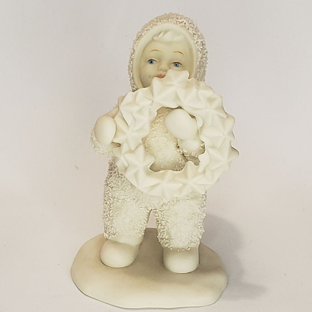 Dept 56 Snowbabies "I Made This Just For You" Excellent condition. No visible marks at all. Well preserved. Measures 2.5” wide, 4” high, see images Proudly holding a wreath. This snowbaby was introduced in 1991 and retired in 1998. **Check out the rest of my listings for more items to add to your collection. Quick Shipping. Package with care. Thanks for stopping by. Have a great day! #dept 56, #precious moments, #Hummel, #Berta, #Goebel, #Decor, #Art, #Vintage, #Style, #Nature, #Photography, #Girl, #Boy, #Adult, #Living room, #Design, #Designer, #Christmas, #Gift, #Birthday, #Ornament, #Tree, #Bird, #Music, #Book, #Winter, #Summer, #Fall, #Spring, #Autumn, #seasons, #Wedding, #love, #Collection, #Luxury, #Apple, #Fruit, #Tree, #Animals, #Napco, #Book, #Nativity, #Sing, #hop, #jump, #skip, #Rope, #Hike, #Sports, #Basket, #Mother, #Father, #Daughter, #son, #girls, #daddy, #grandmother, #worship, #church, #nurse, #medical, #care, #hope, #Friend, #care, #bell, #sister, #brother, #lights, #plants, #holiday, #village, #store, #pet, #store, #toy, #coffee, #snack, #drink, #dessert, #dance, #country, #dinner, #wedding, #memories, #happiness, #family, #baby