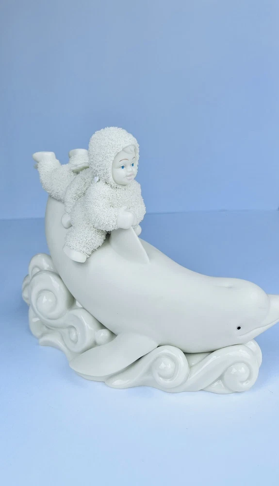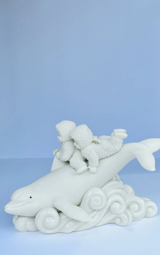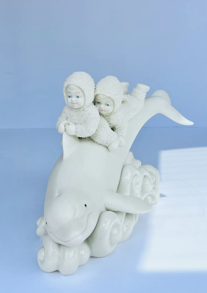 Dept. 56 Snowbabies "Ride the Wave" 56.69057, 2 Babies on Dolphin, 2000. No box Does contain foam box