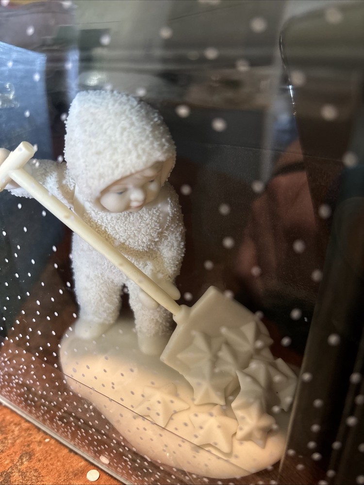 Add a touch of winter charm to your collection with this adorable Snowbabies figurine from Department 56. The asymmetrical, beige figurine features a cute baby subject covered in snow, with a textured finish that adds to its winter-themed appeal. This medium-sized figurine is made of ceramic and porcelain and was manufactured in Taiwan in 1988. The "So Much Work To Do" figurine is part of the Snowbabies collection and is perfect for indoor display during the winter season. This retired, boxed figurine is a great addition to any collector's holiday and seasonal figurines collection. Get your hands on this timeless piece before it's gone!