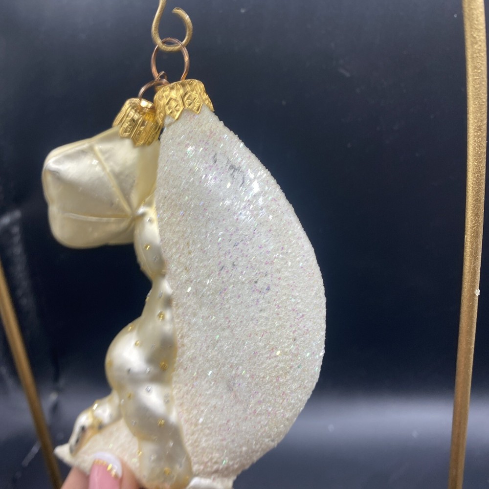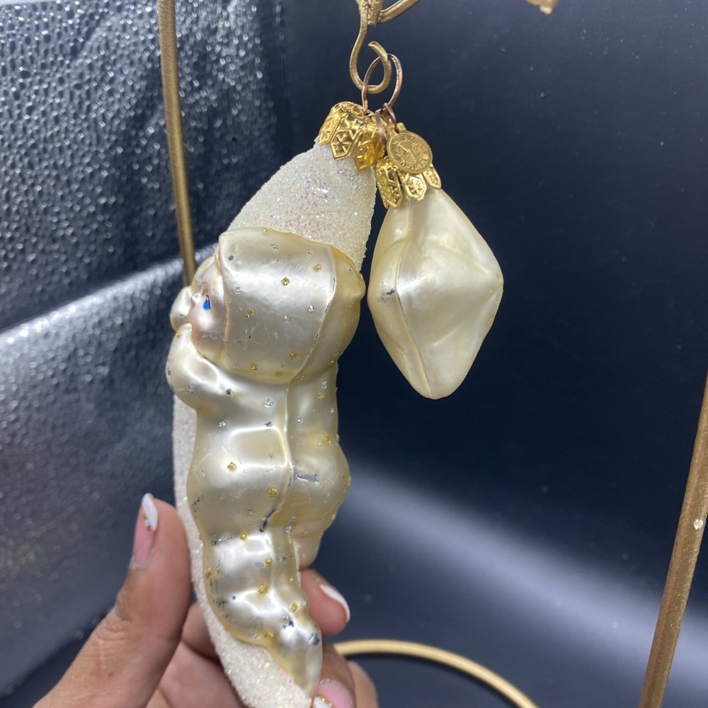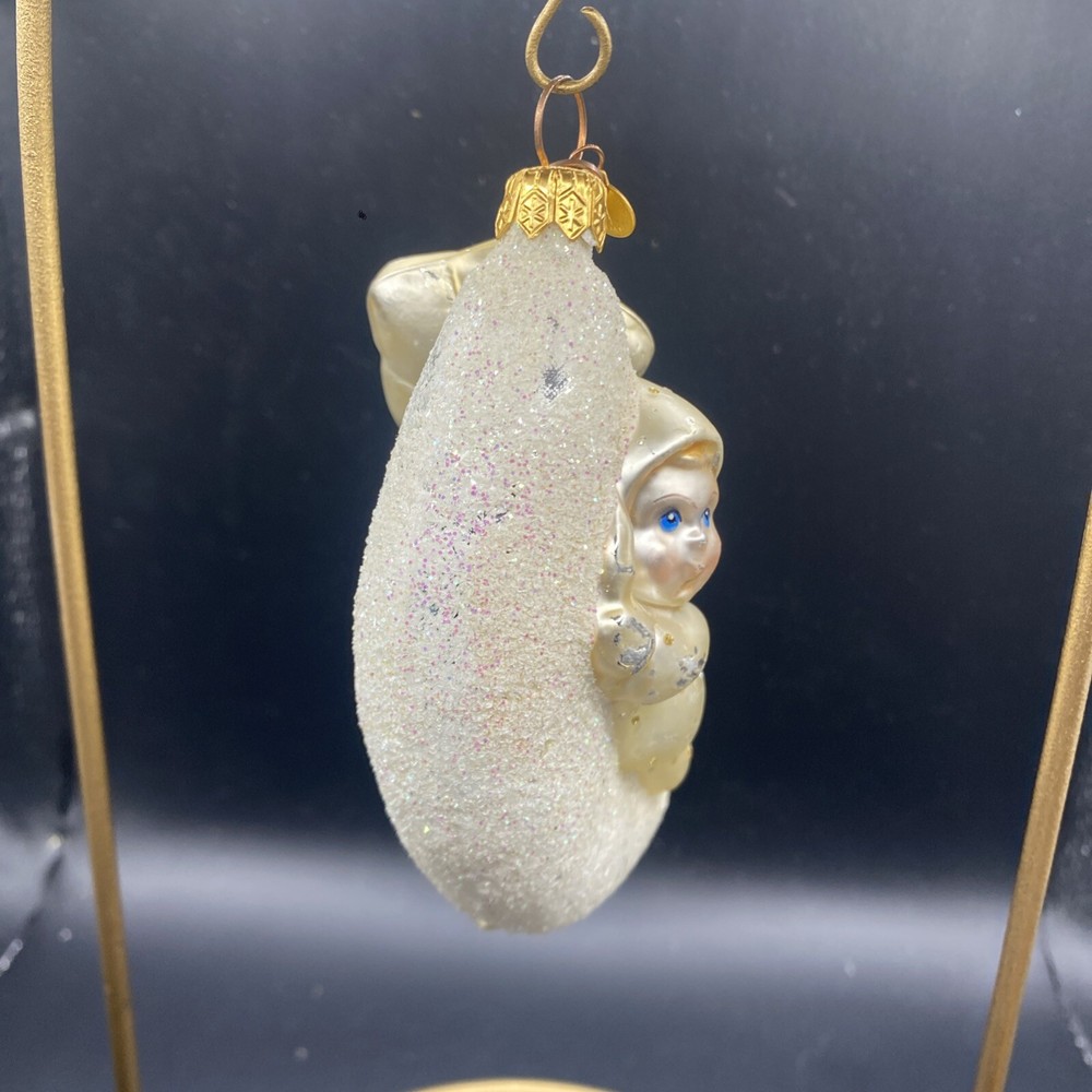 Celebrate the holiday season with this vintage Dept 56 Snowbabies hanging ornament. The ornament features a beautiful all-over white pattern and is made of high-quality glass and mercury glass materials. It depicts a moon and a Christmas tree, perfect for adding to your holiday decor. This retired ornament is from the Night Before Christmas collection series and was manufactured in Poland in the 2000s. It comes with two Snowbabies ornaments, each with stars, and is a great addition to any adult's collection. Get into the contemporary style and enjoy the holiday theme with this lovely Snowbabies ornament.