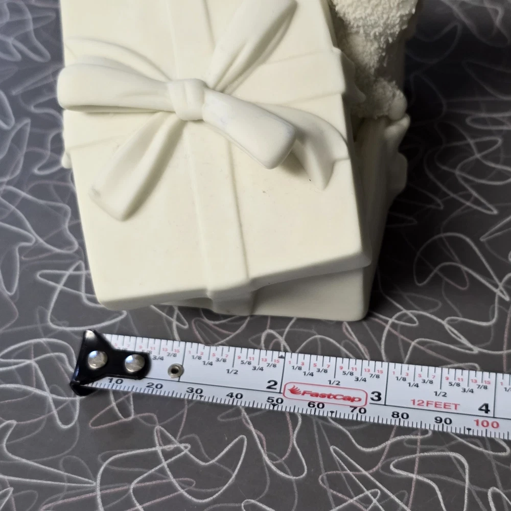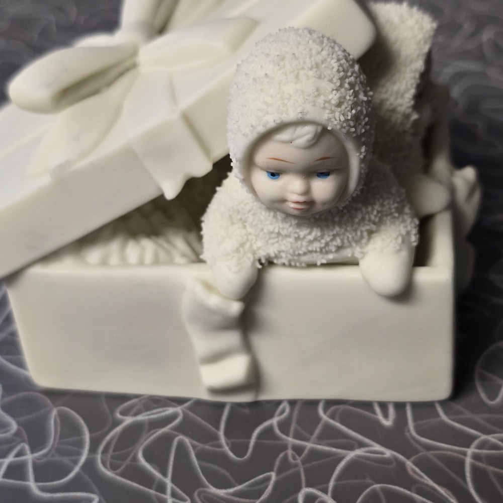 This Dept. 56 Snowbabies figurine features two adorable babies in a gift box, perfect for Christmas. The matte finish porcelain figurine was manufactured in Taiwan in 1987 and is a part of the Snowbabies collection. It is a small-sized, unboxed, and retired piece that makes a great addition to any holiday or figurine collection. The bone ivory color and 1980s style make it a timeless piece that can be enjoyed for years to come.
