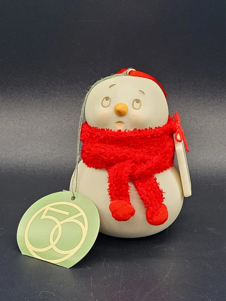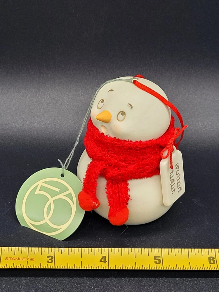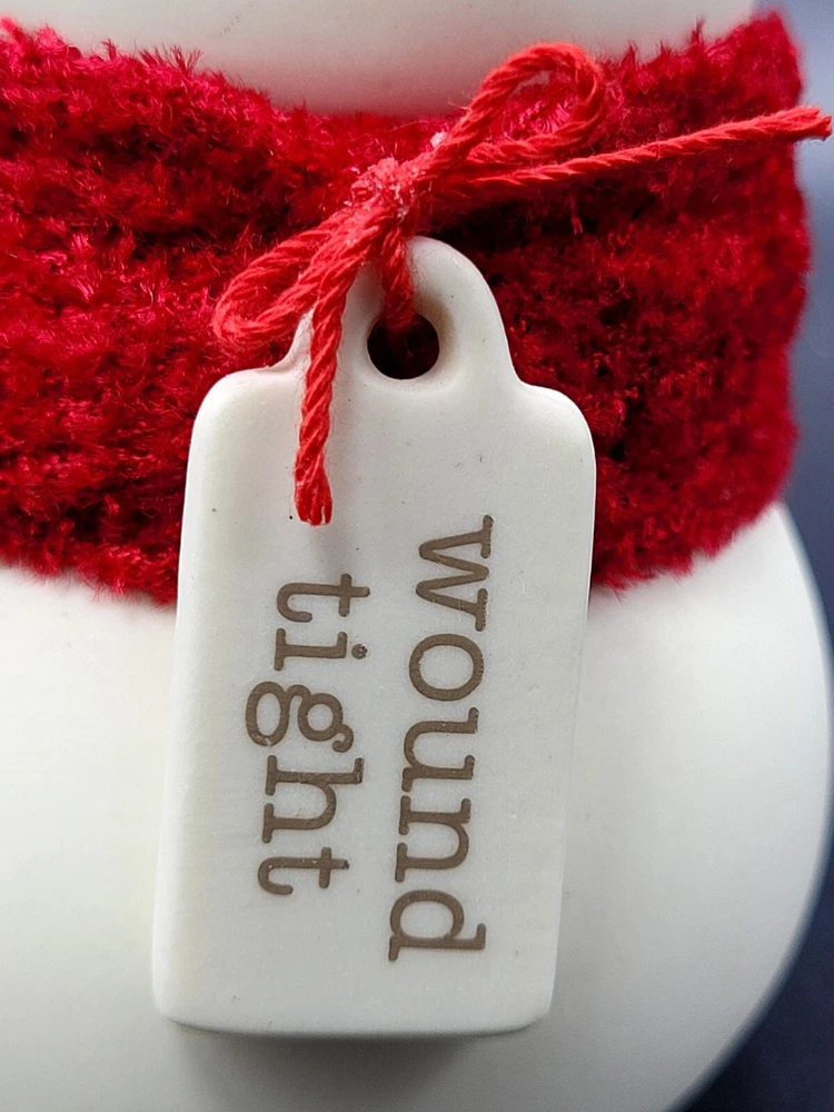 Darling expression. Porcelain charm/tag reads " Wound Tight". Bright red scarf with pom-poms. Original Dept 56 Tag & sticker. 3" height. Excellent condition. Please view all photos and forward any and all questions before bidding or purchasing. Pictures are part of the description. Shipped USPS GROUND ADVANTAGE. CHECK OUT OUR OTHER UNIQUE LISTINGS FOR QUALITY FINDS AND BUYS!