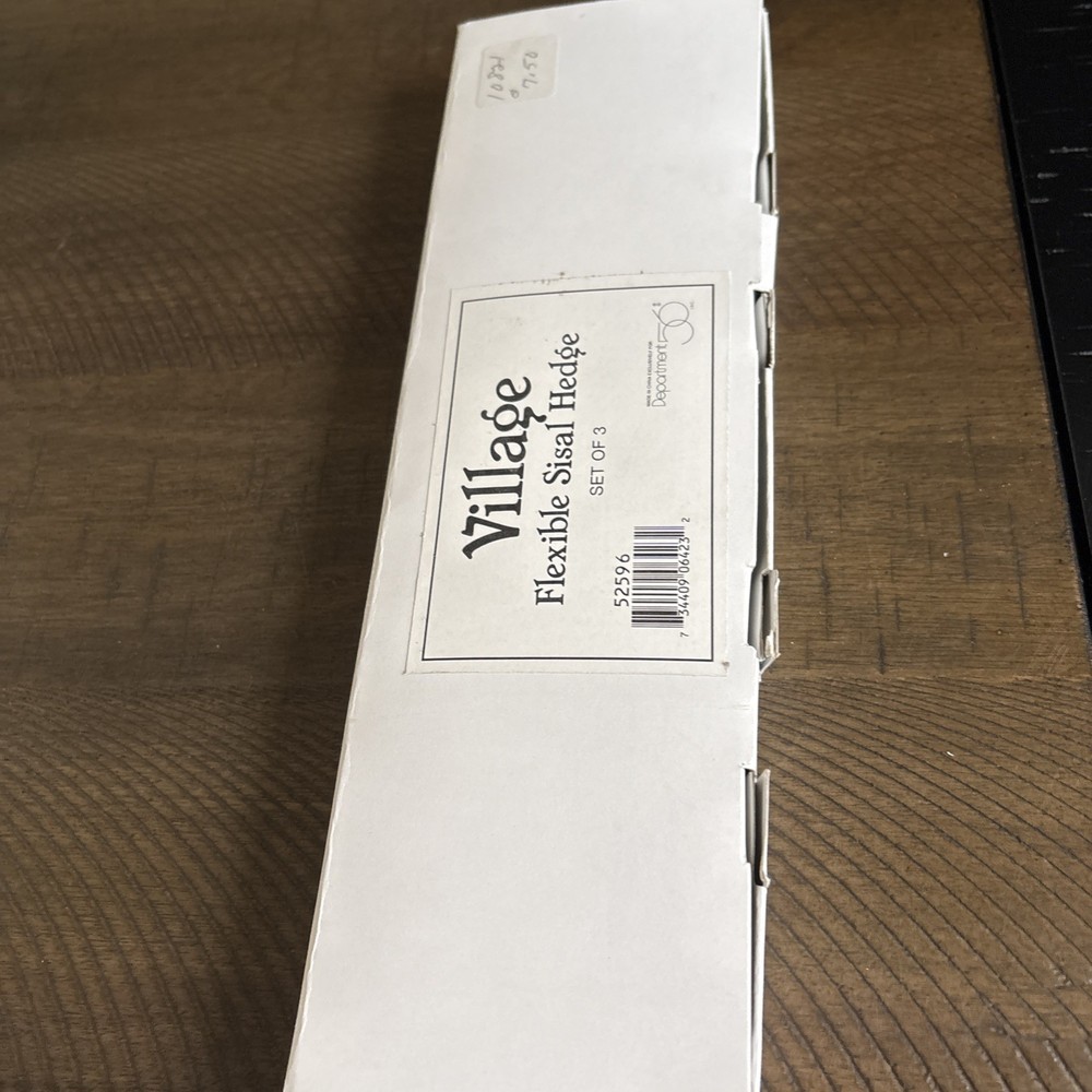 The Department 56 Village Flexible Sisal Hedge Set of 3 is a decorative addition to any Christmas village display. Each hedge measures 12 inches and is designed in a rectangular shape, perfect for adding a touch of greenery to your seasonal scene. Made by Department 56, this retired piece from the Snow Village collection features a frosted finish, adding a festive touch to your Victorian-era village setting. Ideal for any room in your home, these hedges are a charming and versatile collectible for holiday enthusiasts.