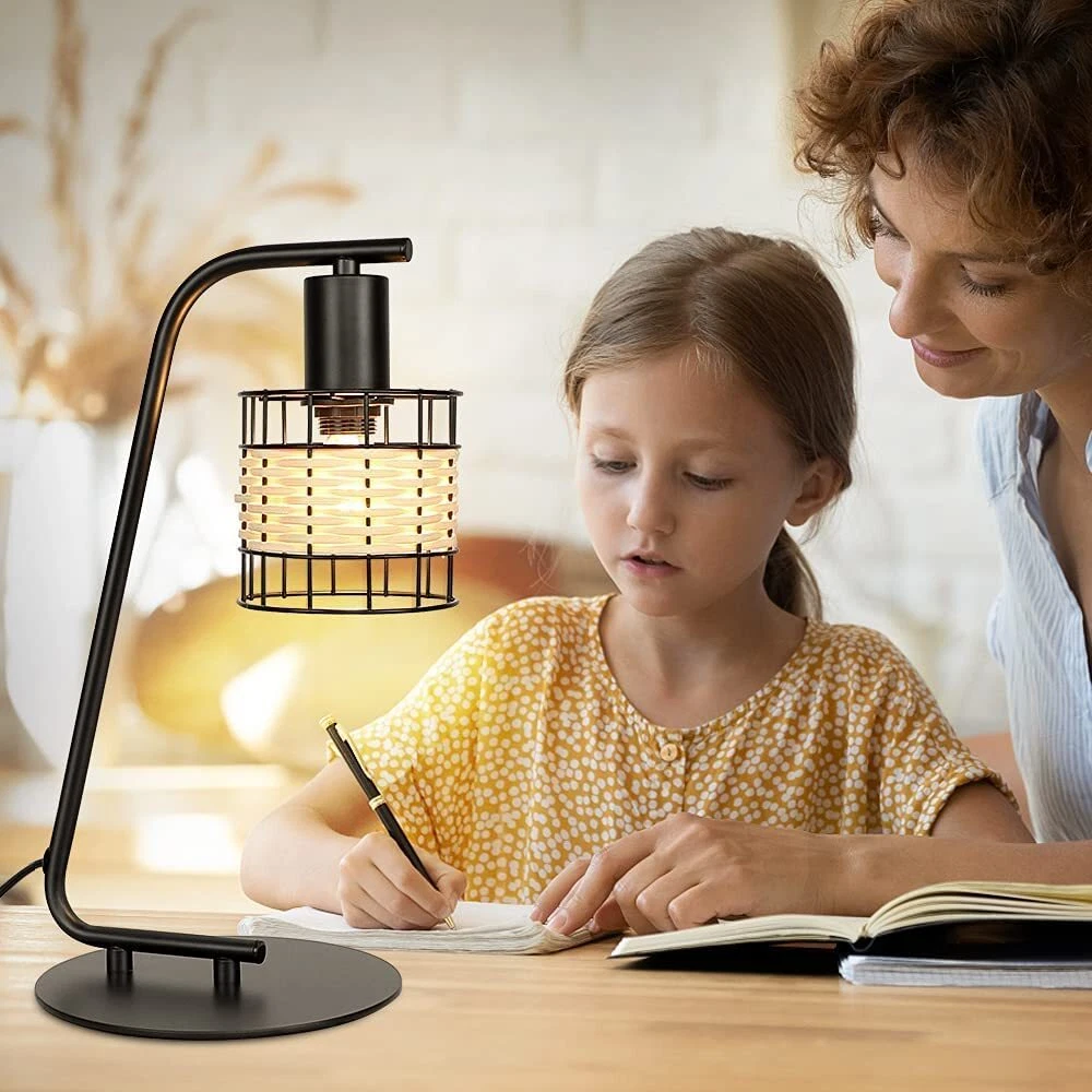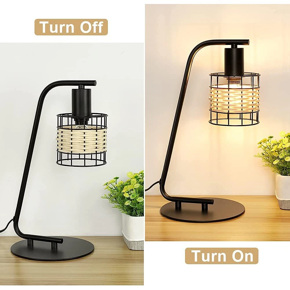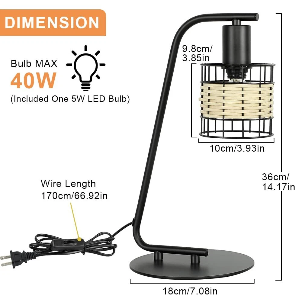 【Unique Metal & Rattan Design】The black table lamp is designed with a painted metal and rattan lampshade. Moreover, it is also an excellent decoration with high-quality lampshade for your room. 【UL E12 Socket & Bulb Included】The modern desk Lamp comes with a 5W LED Bulb for your convenience. With a UL E12 Bulb Socket, the bulb can be replaced as desired.(Max 40W) 【Convenient On/Off Switch & UL-listed Cord】For safety and reliable operation, the on/off button switch located on UL-listed cord. So if you want to turn on/off the bedside lamp, you don’t have to get up. Perfect pick for bedroom, living room and study. 【Eye-Caring & Easy Installation】 If you are searching for an eye-caring LED table lamp for your spaces, this LED desk lamp is definitely the one you need! No more eye fatigue!Brightens your college dorm, bedroom, office. 【Depuley Warranty】Depuley is committed to create high-quality products and service for you. If you have any questions with this rattan table lamp, we will reply you within 24 hours.