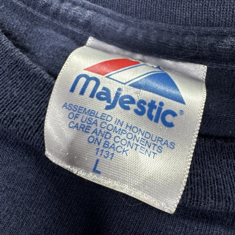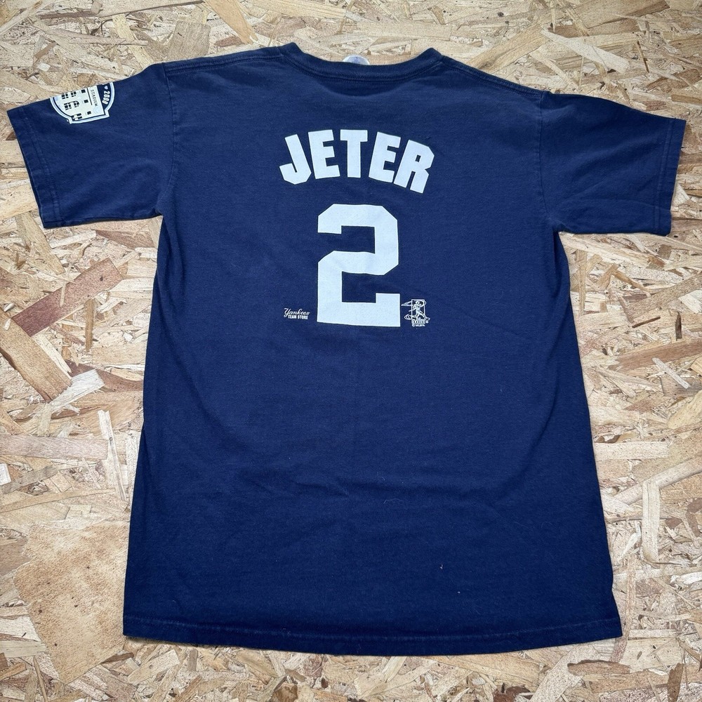 Size Type:RegularType:T-shirtBrand:MajesticGender:MenSport:Baseball-MLBLeague:Major League (MLB)Color:BlueTeam:New York YankeesProduct:ShirtPlayer:Derek JeterDepartment:MenSize:L