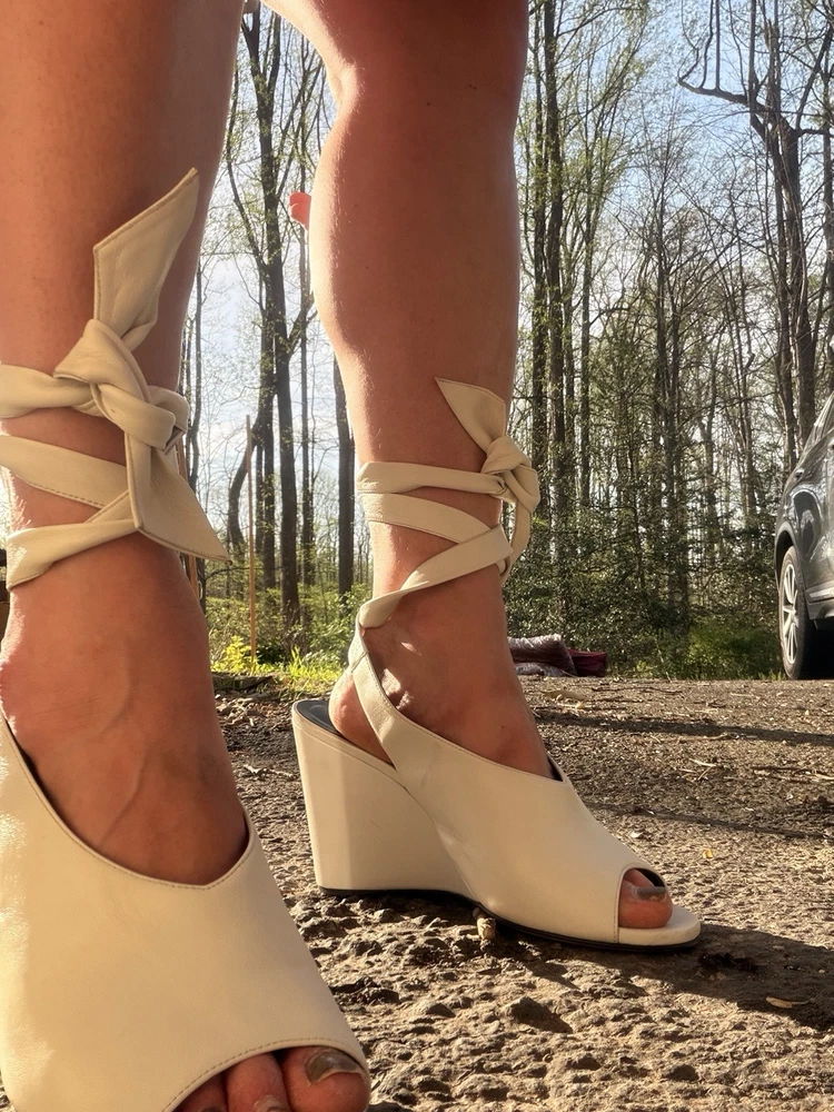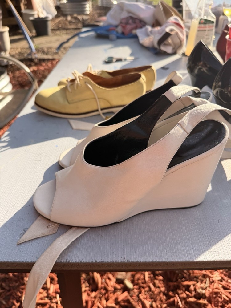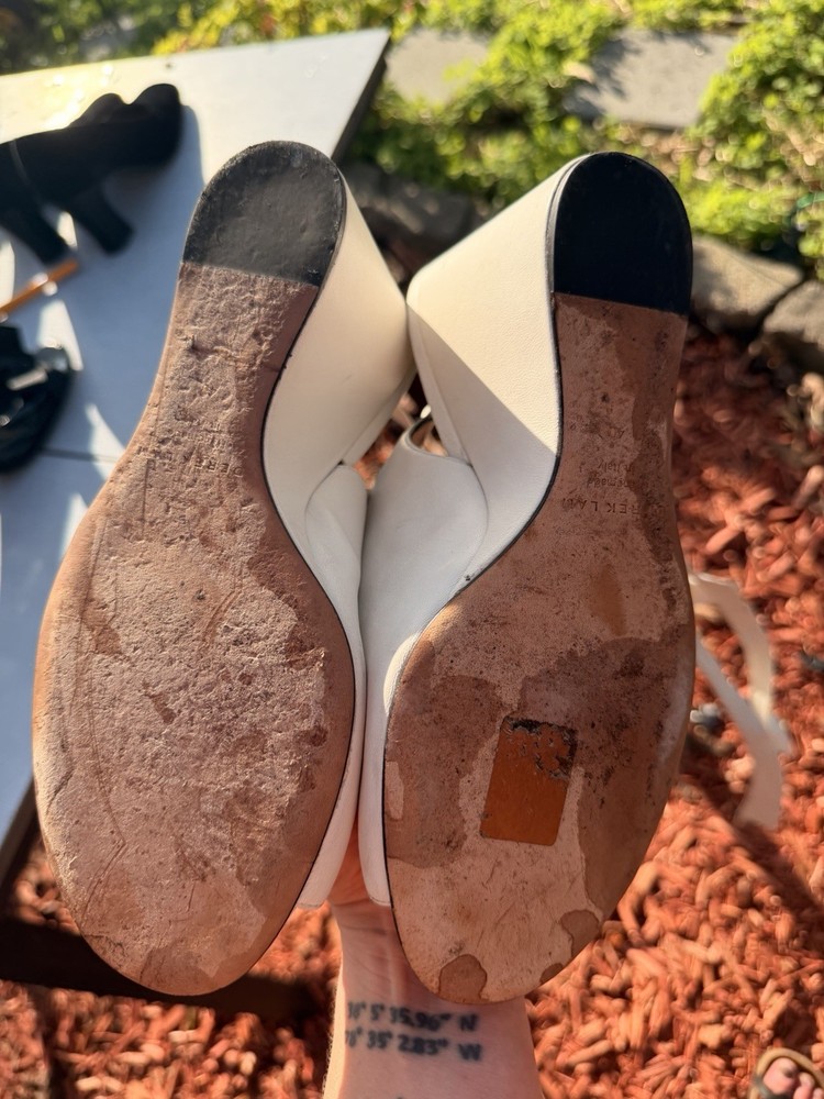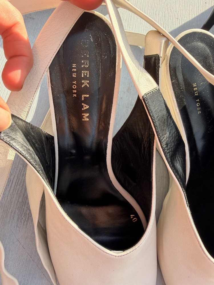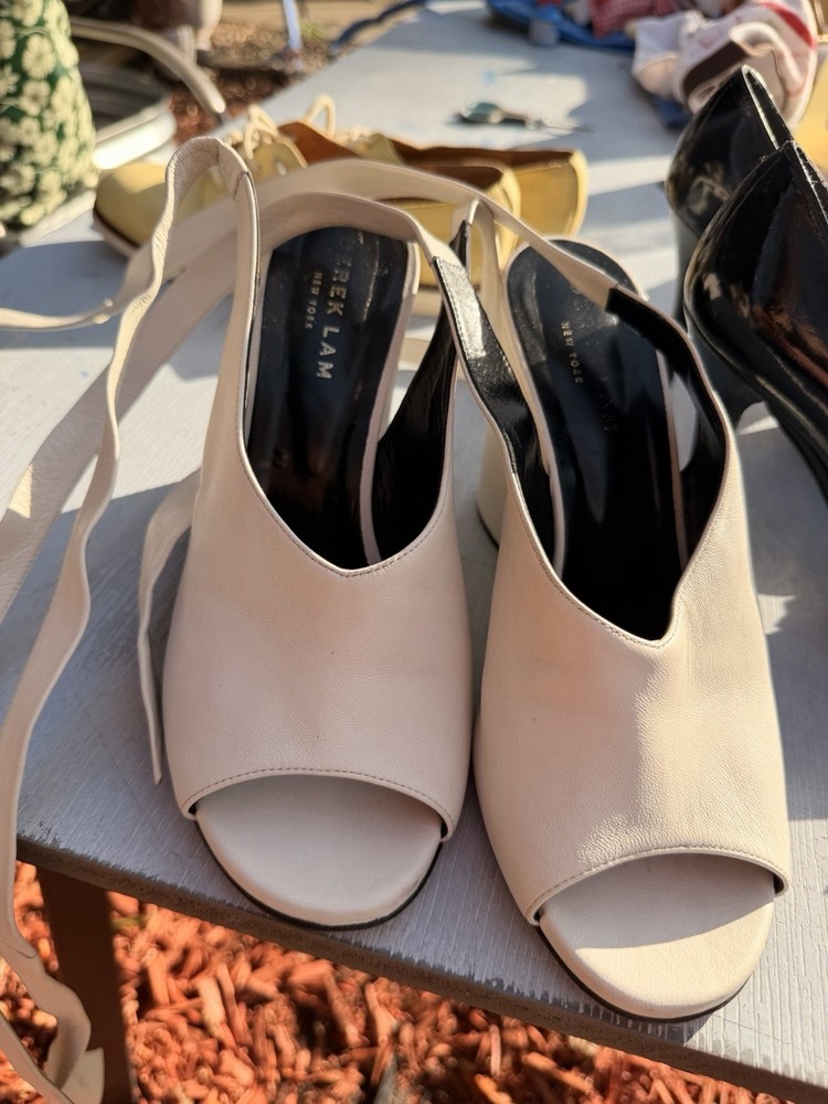 The Derek Lam Leather Tie Wedge Slingback Sandals in cream are a stylish and comfortable choice for women. Featuring a solid beige color with a tie closure and ankle strap, these sandals are perfect for casual occasions during the summer and spring seasons. Made with high-quality leather, these sandals have a wedge heel style and slingback design that adds a touch of sophistication. With a US size 10 and EU size 40, these sandals are a versatile addition to any woman's wardrobe.