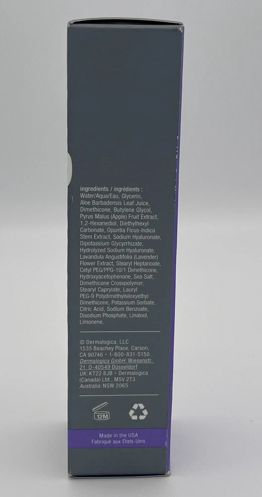 Brand: Dermalogica Custom Bundle: No MPN: 3341C0 Ingredients: Water, Glycerin, Cactus UPC: 0666151032057 Size: Regular Sun Protection Factor (SPF): SPF 0 UVA Protection: UVA (EU Compliant) Main Purpose: Moisturizer Expiration Date: N/A Product Line: Dermalogica Active Moist Volume: 1.7 fl oz Features: Hydrating, Gluten-Free, All Natural Ingredients, Oil-Free, Alcohol-Free, Animal Cruelty-Free, Hypoallergenic, Paraben-Free, Perfume-Free, Contains Hyaluronic Acid, Ammonia-Free, Vegan Set Includes: Daily Use Type: Daily Use Skin Type: Dry Skin Scent: Apple Body Area: Face Country/Region of Manufacture: United States Period After Opening (PAO): 36M gtin13: 0666151032057 Formulation: Gel Color: White Department: Unisex Active Ingredients: Aloe Vera