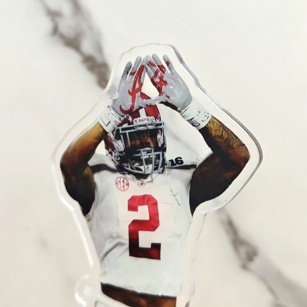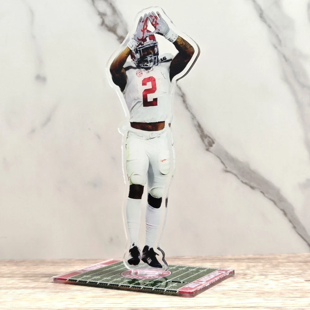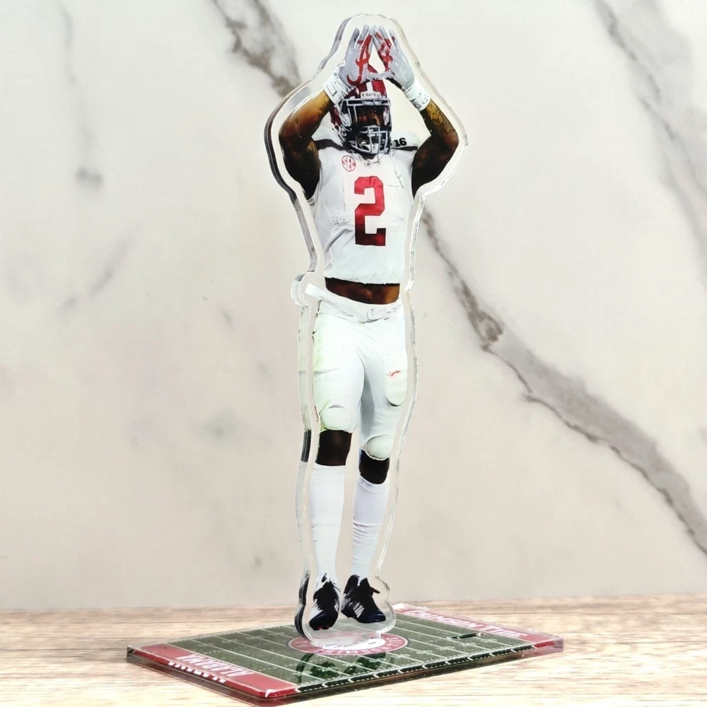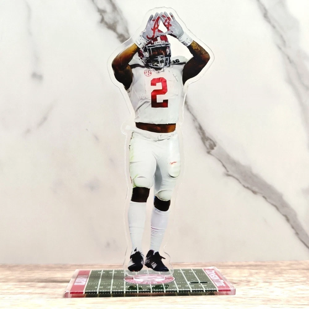 Item Details: Laser-cut 2D (Two Dimensional) acrylic standee Measure: Approx 6.4 inches tall One side design Material: 100% Acrylic Add this to your never ending collection of football memorabilia. This laser-cut two dimensional figurine depicts your favorite player in action. Whether displayed in your home, office, for fan cave, this item is perfect for showcasing your love for football.