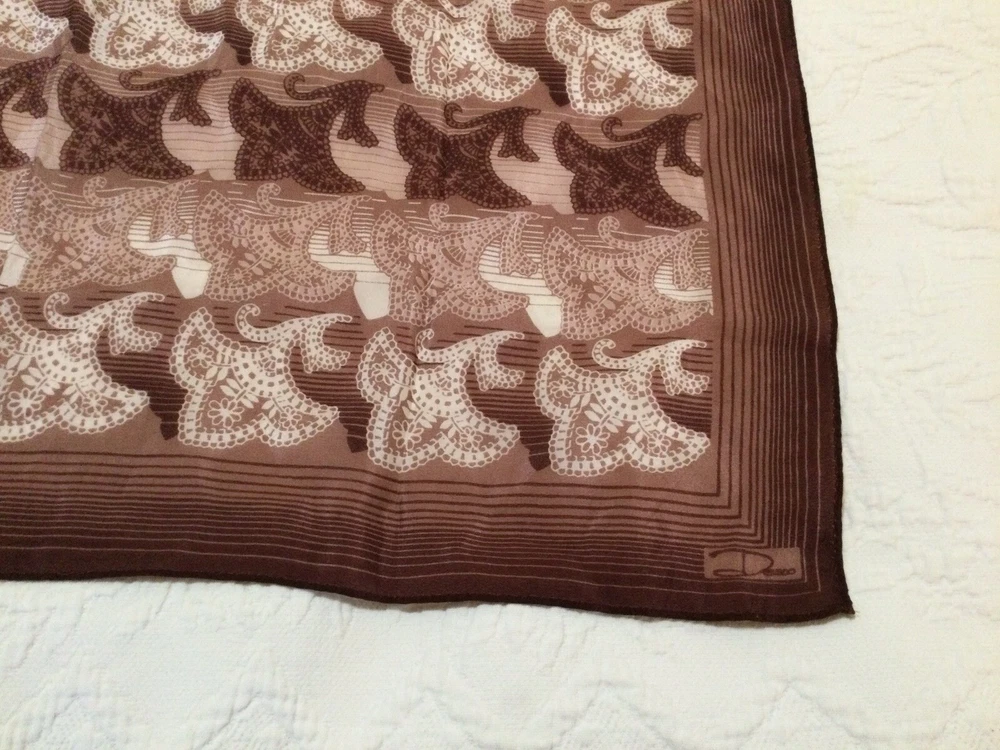 Desco Vintage Brown Paisley Square silk blend Scarf 23.5"x23.5" (K46) Gently preowned Item Details: Shipping, payment, & other information: • Items come from a pet free and smoke free home. • I ship within 2 business days of receiving payment. • If you have questions about an item please ask those BEFORE bidding or purchasing. • In an effort to be green, we do recycle shipping materials. • All REASONABLE offers will be considered! Please checkout our store and our other items - we have unique finds dropping monthly at discounted prices! **I DO COMBINE SHIP ITEMS. PLEASE LET ME KNOW AND I WILL SEND YOU AN UPDATED INVOICE. **