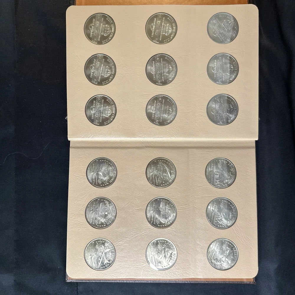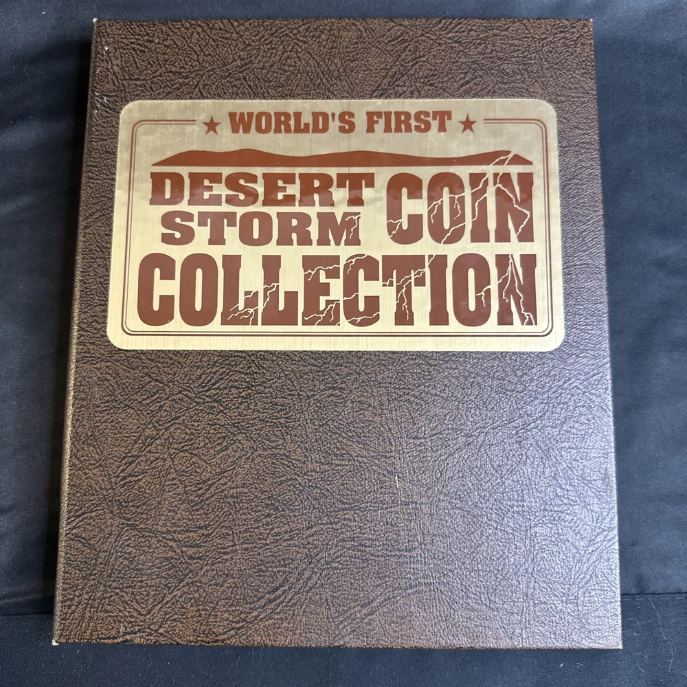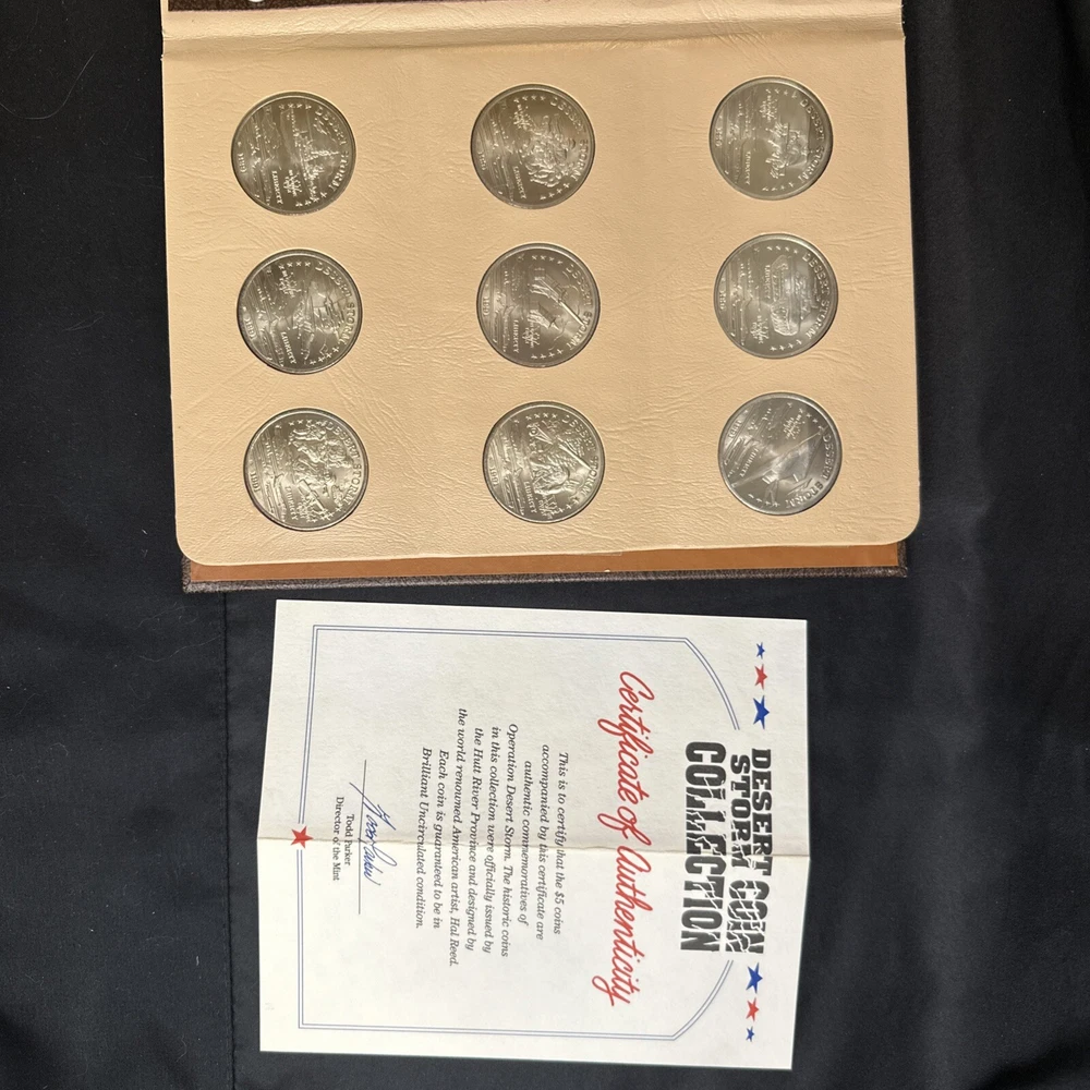 Coins are uncirculated, binder has been opened which is why this has been stated as used. This Desert Storm Coin Collection is a must-have for any militaria enthusiast. The set includes 45 original period items from the United States, highlighting the theme of the Desert Storm conflict (1990-91). Each coin bears a unique design, showcasing the creative side of military coinage. The collection is complete with original/reproduction coins, making it a valuable addition to any collection. This item is perfect for those interested in the history of military coinage and the Desert Storm conflict. No international shipping