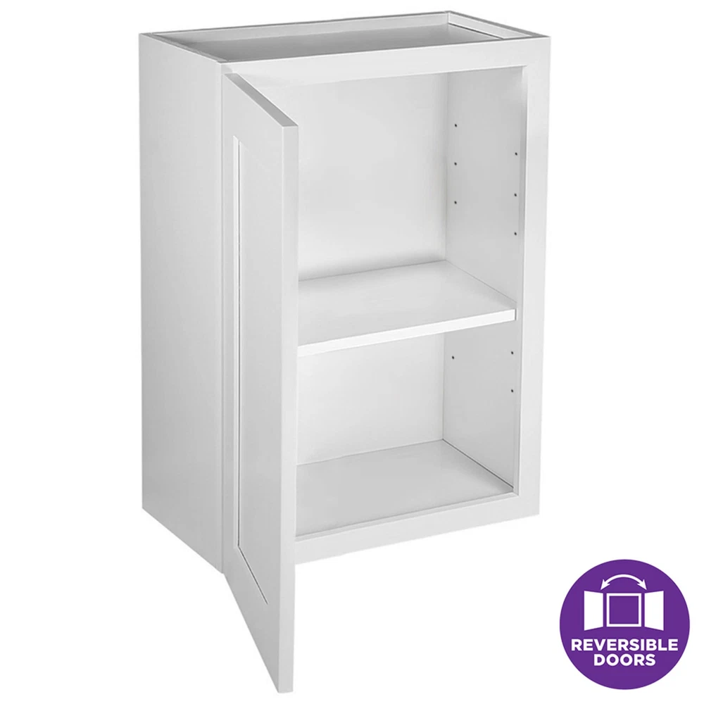Number of Doors:1Item Width (Interior):18.000Style:ShakerDoor Style:ShakerType:Wall CabinetItem Height (Interior):24gtin13:0044321613358Features:Adjustable ShelvesRoom:KitchenColor:WhiteMPN:613356Item Height:24UPC:0044321613358GTIN:0044321613358Brand:Design HouseNumber of Shelves:2