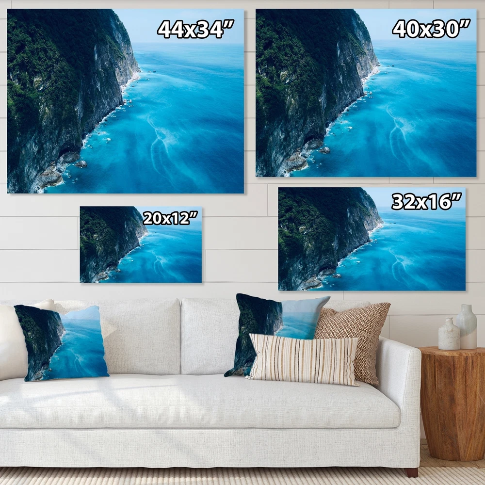 This beautiful Aeral View Of Ocean By the Mountains Canvas Art is printed using the highest quality fade-resistant ink on canvas. Every one of our fine art giclee canvas prints is printed on premium quality cotton canvas, using the finest quality inks which will not fade over time. Each giclee print is stretched tightly over a 1-inch wood sub frame for small size prints or a 1.5-inch wood subframe for large size prints (40x30 60x28 ...) ensuring the canvas is taught and does not buckle. This canvas art print is gallery-wrapped (the design continues on the sides), giving it a real art gallery feel. All of our canvas prints are carefully packaged with plastic protection, fragile labeling, and sturdy boxes to ensure safe delivery. Every canvas print arrives ready to hang on the wall, with the Free Shipping Over $49.99* Details Designart "Aeral View Of Ocean By the Mountains" Nautical & Coastal Canvas Wall Product Description: This beautiful Aeral View Of Ocean By the Mountains Canvas Art is printed using the highest quality fade-resistant ink on canvas. Every one of our fine art giclee canvas prints is printed on premium quality cotton canvas, using the finest quality inks which will not fade over time. Each giclee print is stretched tightly over a 1-inch wood sub frame for small size prints or a 1.5-inch wood subframe for large size prints (40x30 60x28 ...) ensuring the canvas is taught and does not buckle. This canvas art print is gallery-wrapped (the design continues on the sides), giving it a real art gallery feel. All of our canvas prints are carefully packaged with plastic protection, fragile labeling, and sturdy boxes to ensure safe delivery. Every canvas print arrives ready to hang on the wall, with the hanging kits included. - Style Nautical & Coastal - Subject Beach, Landscapes - Color Blue - This canvas giclee print is gallery-wrapped (the design continues on the sides) , giving it a real art gallery feel. - Premium quality cotton canvas. - Arrives ready to hang on the wall - Easy to Hang