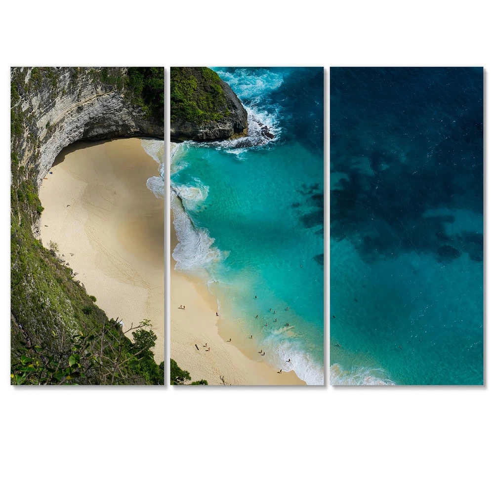 This beautiful Aerial View Of Blue Ocean Beach Multipanels canvas art is printed using the highest quality fade-resistant ink on canvas. Every one of our fine art giclee canvas prints is printed on premium quality cotton canvas, using the finest quality inks which will not fade over time. Each giclee print is stretched tightly over a 1-inch wood subframe ensuring the canvas is taught and does not buckle. This canvas art print is gallery-wrapped (the design continues on the sides), giving it a real art gallery feel. All of our canvas prints are carefully packaged with plastic protection, fragile labeling, and sturdy boxes to ensure safe delivery. Every canvas print arrives ready to hang on the wall, with the hanging kits included.- Style : Nautical & Coastal- Subject : Beach, Landscapes- Free Shipping Over $49.99* Details Designart "Aerial View Of Blue Ocean Beach" Nautical & Coastal Canvas Wall Art Product Description: This beautiful Aerial View Of Blue Ocean Beach Multipanels canvas art is printed using the highest quality fade-resistant ink on canvas. Every one of our fine art giclee canvas prints is printed on premium quality cotton canvas, using the finest quality inks which will not fade over time. Each giclee print is stretched tightly over a 1-inch wood subframe ensuring the canvas is taught and does not buckle. This canvas art print is gallery-wrapped (the design continues on the sides), giving it a real art gallery feel. All of our canvas prints are carefully packaged with plastic protection, fragile labeling, and sturdy boxes to ensure safe delivery. Every canvas print arrives ready to hang on the wall, with the hanging kits included. - Style Nautical & Coastal - Subject Beach, Landscapes - Color Turquoise - This canvas giclee print is gallery-wrapped (the design continues on the sides) , giving it a real art gallery feel. - Premium quality cotton canvas. - Arrives ready to hang on the wall - Easy to Hang