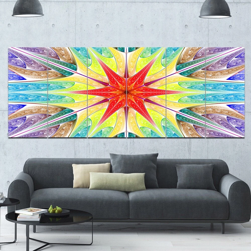 This beautiful Landscapes Canvas Art is printed using the highest quality fade resistant ink on canvas. Every one of our fine art giclee canvas prints is printed on premium quality cotton canvas, using the finest quality inks which will not fade over time. Each giclee print is stretched tightly over a 1 inch wood sub frame ensuring the canvas is taught and does not buckle. This canvas art print is gallery-wrapped (the design continues on the sides) , giving it a real art gallery feel. All of our canvas prints are carefully packaged in inflated cushion wrap, fragile labeling and sturdy boxes to ensure a safe delivery. Every canvas print arrives ready to hang on the wall, with the hanging kits includedShape: RectangleOrientation: HorizontalSubject: AbstractStyle: Contemporary, Fine Art Free Shipping Over $49.99* Details Designart " Beautiful Colorful Stained Glass" Abstract Wall Art Canvas Product Description: This beautiful Landscapes Canvas Art is printed using the highest quality fade resistant ink on canvas. Every one of our fine art giclee canvas prints is printed on premium quality cotton canvas, using the finest quality inks which will not fade over time. Each giclee print is stretched tightly over a 1 inch wood sub frame ensuring the canvas is taught and does not buckle. This canvas art print is gallery-wrapped (the design continues on the sides) , giving it a real art gallery feel. All of our canvas prints are carefully packaged in inflated cushion wrap, fragile labeling and sturdy boxes to ensure a safe delivery. Every canvas print arrives ready to hang on the wall, with the hanging kits included ShapeRectangle OrientationHorizontal SubjectAbstract StyleContemporary, Fine Art Giclee, Modern Dimensions32 inches high x 83 inches wide x 1 inch deep