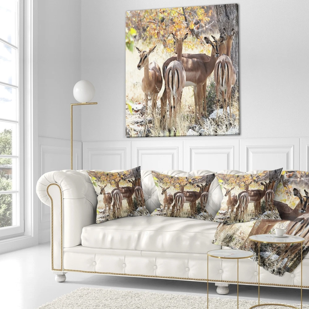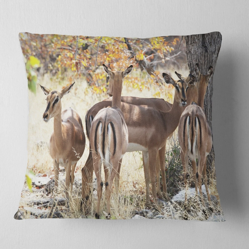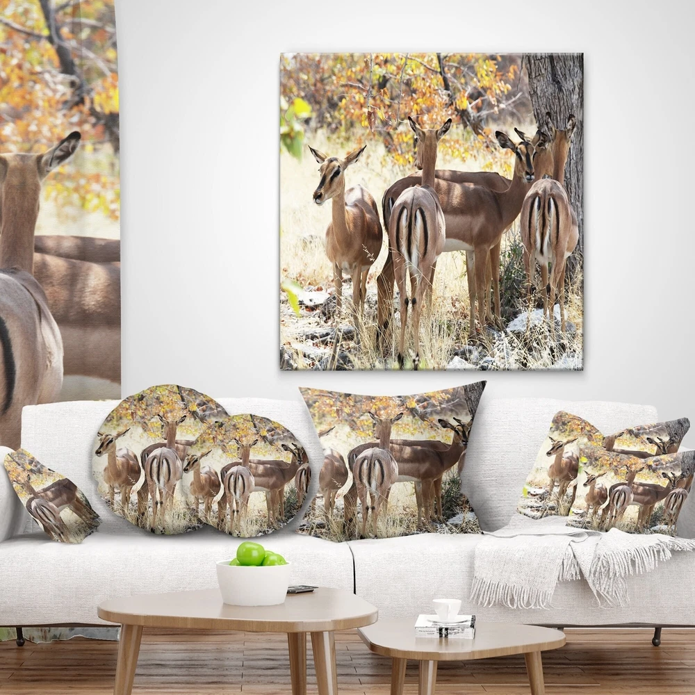 Decorative Throw Pillows for Couch Bed Sofa with Zip CoversAn easy, fun way to add a pop of color or bring new life to any room in your home or office is with these beautiful Animal throw pillows. Dress up your bed, sofa or lounger with this decorative design art pillows. Perfect as Traditional bedroom décor, lounge décor Modern living room décor. It adds a fun accent to any room. Throw pillows really do work wonders: they can transform any room from uninviting discomfort to warm and welcoming. And they really do go almost anywhere - arrange a couple on the couch or sofa, place one in your overstuffed chair for extra coziness, toss a couple on the bed and prop yourself up for a great read.These Animals pillow is printed using High Color Density Italian inks to create a vibrantly colored, Free Shipping Over $49.99* Details Designart 'Beautiful Herd of Antelope Gnu' African Throw Pillow Product Description: Decorative Throw Pillows for Couch Bed Sofa with Zip Covers An easy, fun way to add a pop of color or bring new life to any room in your home or office is with these beautiful Animal throw pillows. Dress up your bed, sofa or lounger with this decorative design art pillows. Perfect as Traditional bedroom décor, lounge décor Modern living room décor. It adds a fun accent to any room. Throw pillows really do work wondersthey can transform any room from uninviting discomfort to warm and welcoming. And they really do go almost anywhere - arrange a couple on the couch or sofa, place one in your overstuffed chair for extra coziness, toss a couple on the bed and prop yourself up for a great read. These Animals pillow is printed using High Color Density Italian inks to create a vibrantly colored, sharp artwork. Features: Perfect accent to any furniture piece Basic shapes with a modern graphic design twist Printed on 100% light weight polyester Cushion filled with 100% polyester fill Wrinkle resistant fabric Zip Closure so you can remove the pillow from its' cover Down-like comfort - Odorless 100% Hypoallergenic Machine Wash Cold Separately, Gently Cycle Only, No bleach, hang to dry Print on Demand with High Density Italian Ink Available in Several sizes Attribute :Traditional, Modern, Contemporary Subject Animals, Country Charm, Photography