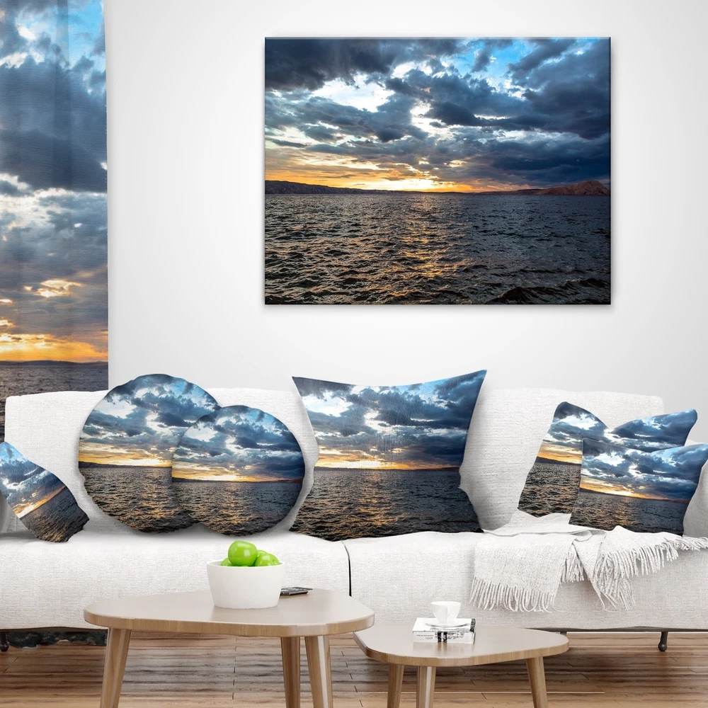 Decorative Throw Pillows for Couch Bed Sofa with Zip CoversAn easy, fun way to add a pop of color or bring new life to any room in your home or office is with these beautiful Sea & Shore throw pillows. Dress up your bed, sofa or lounger with this decorative design art pillows. Perfect as Beach bedroom décor, lounge décor Coastal living room décor. It adds a fun accent to any room. Throw pillows really do work wonders: they can transform any room from uninviting discomfort to warm and welcoming. And they really do go almost anywhere - arrange a couple on the couch or sofa, place one in your overstuffed chair for extra coziness, toss a couple on the bed and prop yourself up for a great read.These Sea & Shore pillow is printed using High Color Density Italian inks to create a vibrantly Free Shipping Over $49.99* Details Designart 'Beautiful Seascape under Cloudy Sky' Modern Seashore Throw Pillow Product Description: Decorative Throw Pillows for Couch Bed Sofa with Zip Covers An easy, fun way to add a pop of color or bring new life to any room in your home or office is with these beautiful Sea & Shore throw pillows. Dress up your bed, sofa or lounger with this decorative design art pillows. Perfect as Beach bedroom décor, lounge décor Coastal living room décor. It adds a fun accent to any room. Throw pillows really do work wondersthey can transform any room from uninviting discomfort to warm and welcoming. And they really do go almost anywhere - arrange a couple on the couch or sofa, place one in your overstuffed chair for extra coziness, toss a couple on the bed and prop yourself up for a great read. These Sea & Shore pillow is printed using High Color Density Italian inks to create a vibrantly colored, sharp artwork. Features: Perfect accent to any furniture piece Basic shapes with a modern graphic design twist Printed on 100% light weight polyester Cushion filled with 100% polyester fill Wrinkle resistant fabric Zip Closure so you can remove the pillow from its' cover Down-like comfort - Odorless 100% Hypoallergenic Machine Wash Cold Separately, Gently Cycle Only, No bleach, hang to dry Print on Demand with High Density Italian Ink Available in Several sizes Attribute :Beach, Coastal, Tropical Subject Sea & Shore, Nautical, Landscapes