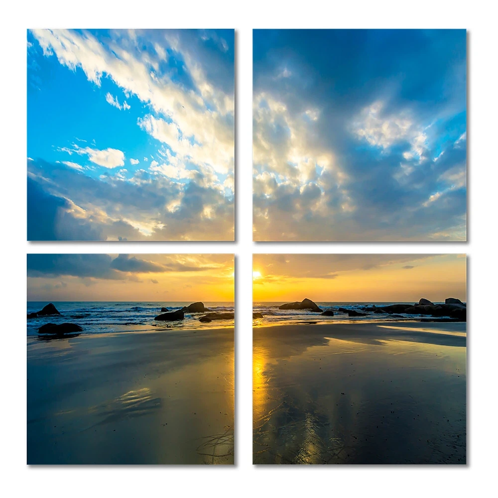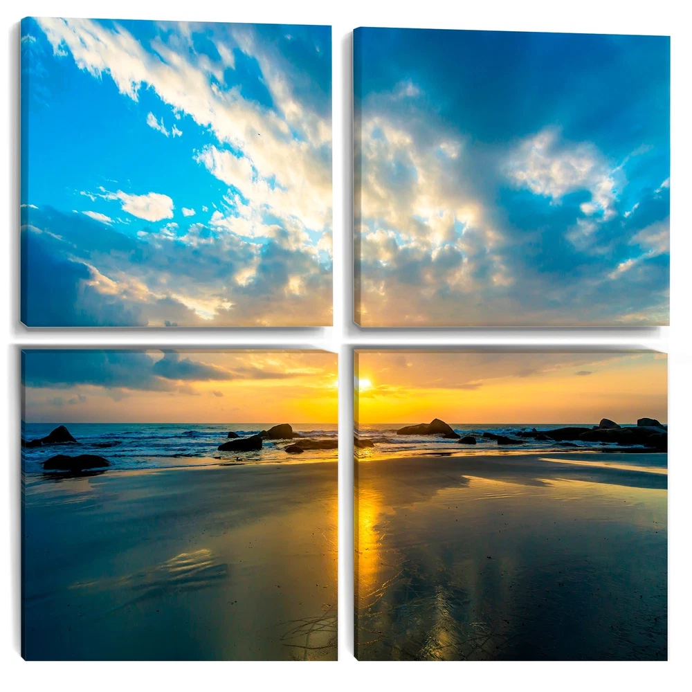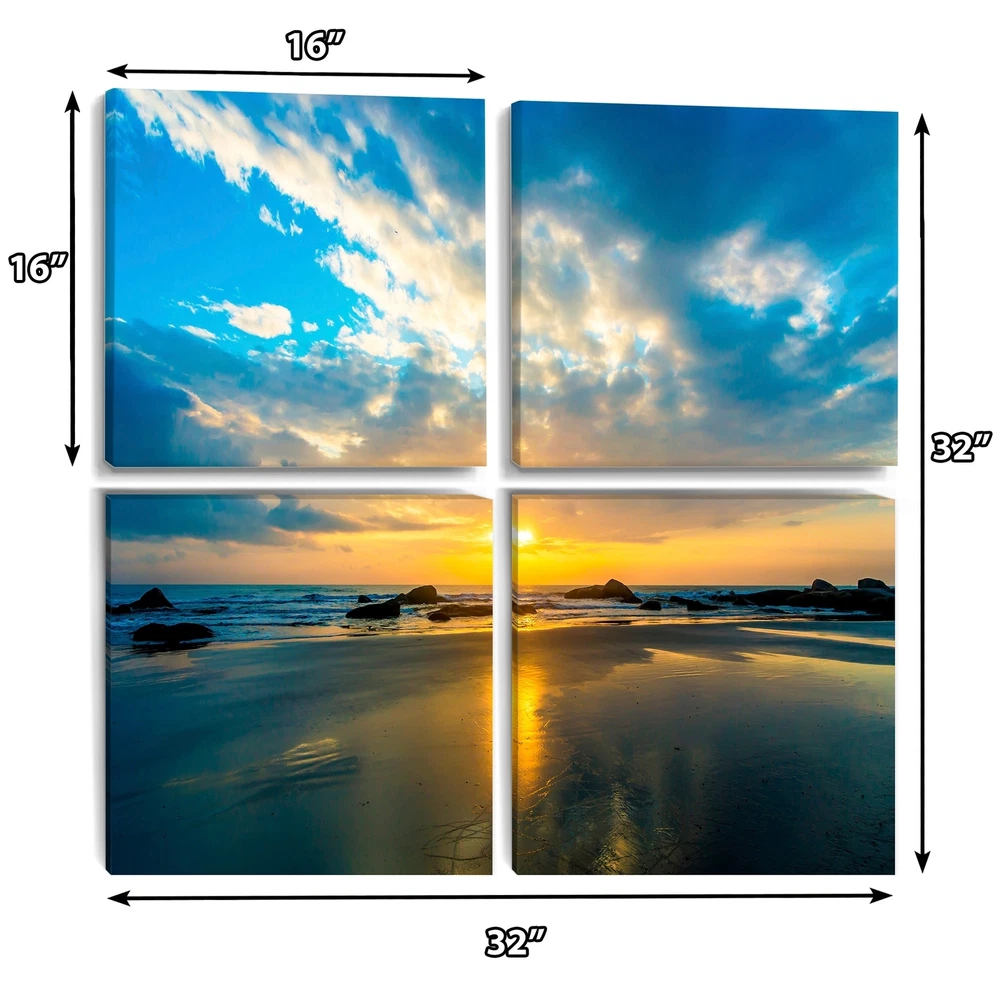 This beautiful Beautiful Sunrise and Seashore Multipanels canvas art is printed using the highest quality fade-resistant ink on canvas. Every one of our fine art giclee canvas prints is printed on premium quality cotton canvas, using the finest quality inks which will not fade over time. Each giclee print is stretched tightly over a 1-inch wood subframe ensuring the canvas is taught and does not buckle. This canvas art print is gallery-wrapped (the design continues on the sides), giving it a real art gallery feel. All of our canvas prints are carefully packaged with plastic protection, fragile labeling, and sturdy boxes to ensure safe delivery. Every canvas print arrives ready to hang on the wall, with the hanging kits included.- Style : Nautical & Coastal- Subject : Beach- Color : Blue- Free Shipping Over $49.99* Details Designart "Beautiful Sunrise and Seashore" Sea & Shore Canvas Wall Art Print Product Description: This beautiful Beautiful Sunrise and Seashore Multipanels canvas art is printed using the highest quality fade-resistant ink on canvas. Every one of our fine art giclee canvas prints is printed on premium quality cotton canvas, using the finest quality inks which will not fade over time. Each giclee print is stretched tightly over a 1-inch wood subframe ensuring the canvas is taught and does not buckle. This canvas art print is gallery-wrapped (the design continues on the sides), giving it a real art gallery feel. All of our canvas prints are carefully packaged with plastic protection, fragile labeling, and sturdy boxes to ensure safe delivery. Every canvas print arrives ready to hang on the wall, with the hanging kits included. - Style Nautical & Coastal - Subject Beach - Color Blue - This canvas giclee print is gallery-wrapped (the design continues on the sides) , giving it a real art gallery feel. - Premium quality cotton canvas. - Arrives ready to hang on the wall - Easy to Hang