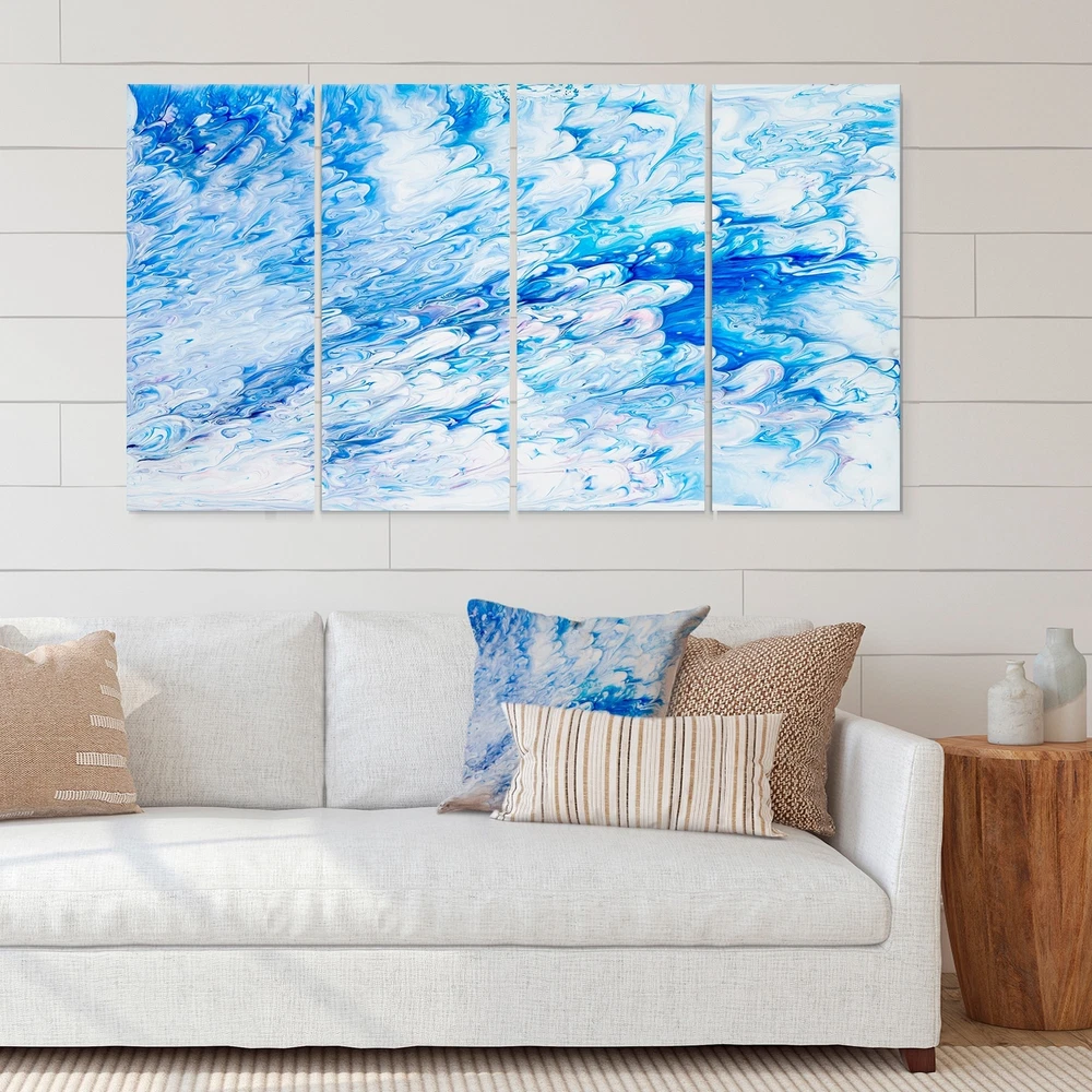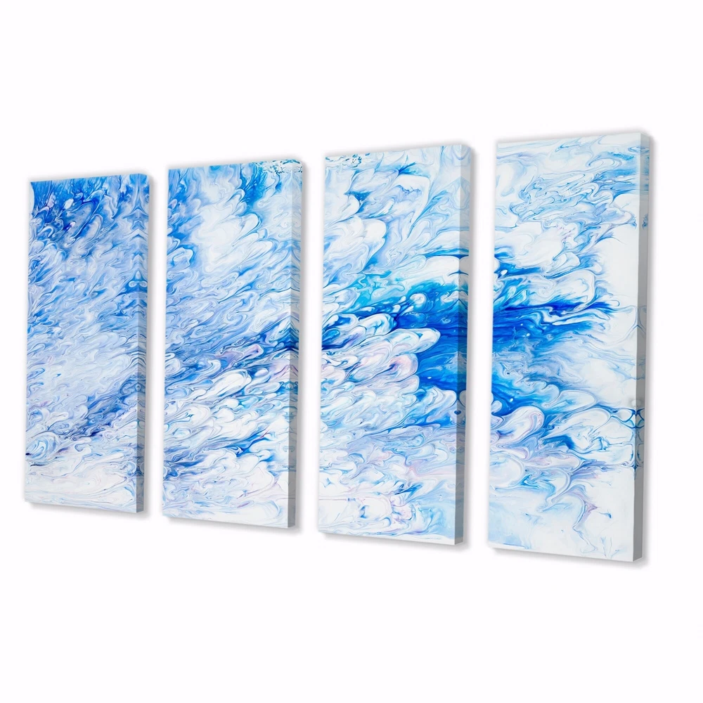 This beautiful Blue And White Liquid Marble Art Multipanels canvas art is printed using the highest quality fade-resistant ink on canvas. Every one of our fine art giclee canvas prints is printed on premium quality cotton canvas, using the finest quality inks which will not fade over time. Each giclee print is stretched tightly over a 1-inch wood subframe ensuring the canvas is taught and does not buckle. This canvas art print is gallery-wrapped (the design continues on the sides), giving it a real art gallery feel. All of our canvas prints are carefully packaged with plastic protection, fragile labeling, and sturdy boxes to ensure safe delivery. Every canvas print arrives ready to hang on the wall, with the hanging kits included.- Style : Modern & Contemporary- Subject : Abstract, - Color Free Shipping Over $49.99* Details Designart "Blue And White Liquid Marble Art" Modern Canvas Wall Art Print - Product Description: This beautiful Blue And White Liquid Marble Art Multipanels canvas art is printed using the highest quality fade-resistant ink on canvas. Every one of our fine art giclee canvas prints is printed on premium quality cotton canvas, using the finest quality inks which will not fade over time. Each giclee print is stretched tightly over a 1-inch wood subframe ensuring the canvas is taught and does not buckle. This canvas art print is gallery-wrapped (the design continues on the sides), giving it a real art gallery feel. All of our canvas prints are carefully packaged with plastic protection, fragile labeling, and sturdy boxes to ensure safe delivery. Every canvas print arrives ready to hang on the wall, with the hanging kits included. - Style Modern & Contemporary - Subject Abstract, - Color Blue - This canvas giclee print is gallery-wrapped (the design continues on the sides) , giving it a real art gallery feel. - Premium quality cotton canvas. - Arrives ready to hang on the wall - Easy to Hang