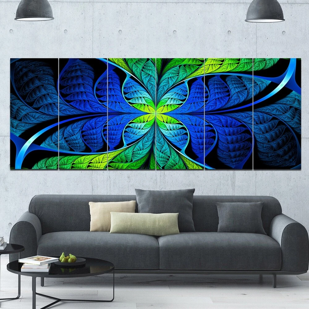 This beautiful Landscapes Canvas Art is printed using the highest quality fade resistant ink on canvas. Every one of our fine art giclee canvas prints is printed on premium quality cotton canvas, using the finest quality inks which will not fade over time. Each giclee print is stretched tightly over a 1 inch wood sub frame ensuring the canvas is taught and does not buckle. This canvas art print is gallery-wrapped (the design continues on the sides) , giving it a real art gallery feel. All of our canvas prints are carefully packaged in inflated cushion wrap, fragile labeling and sturdy boxes to ensure a safe delivery. Every canvas print arrives ready to hang on the wall, with the hanging kits includedShape: RectangleOrientation: HorizontalSubject: AbstractStyle: Contemporary, Fine Art Free Shipping Over $49.99* Details Designart "Blue Green Fractal Stained Glass" Abstract Wall Art on Canvas Product Description: This beautiful Landscapes Canvas Art is printed using the highest quality fade resistant ink on canvas. Every one of our fine art giclee canvas prints is printed on premium quality cotton canvas, using the finest quality inks which will not fade over time. Each giclee print is stretched tightly over a 1 inch wood sub frame ensuring the canvas is taught and does not buckle. This canvas art print is gallery-wrapped (the design continues on the sides) , giving it a real art gallery feel. All of our canvas prints are carefully packaged in inflated cushion wrap, fragile labeling and sturdy boxes to ensure a safe delivery. Every canvas print arrives ready to hang on the wall, with the hanging kits included ShapeRectangle OrientationHorizontal SubjectAbstract StyleContemporary, Fine Art Giclee, Modern SizeOversized