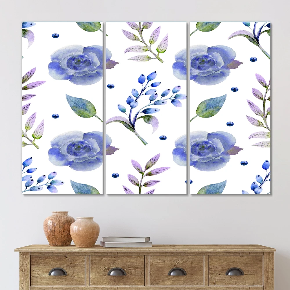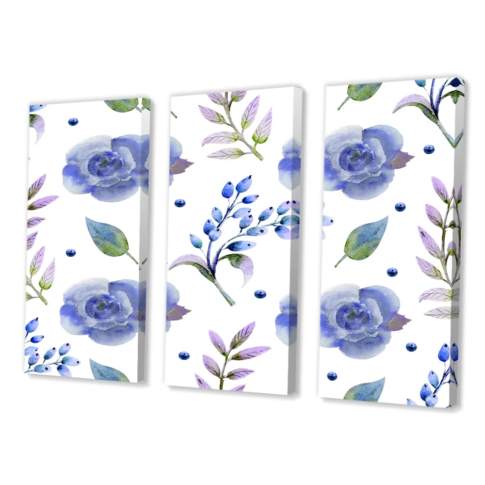 This beautiful Blue Roses With Vintage Leaves Multipanels canvas art is printed using the highest quality fade-resistant ink on canvas. Every one of our fine art giclee canvas prints is printed on premium quality cotton canvas, using the finest quality inks which will not fade over time. Each giclee print is stretched tightly over a 1-inch wood subframe ensuring the canvas is taught and does not buckle. This canvas art print is gallery-wrapped (the design continues on the sides), giving it a real art gallery feel. All of our canvas prints are carefully packaged with plastic protection, fragile labeling, and sturdy boxes to ensure safe delivery. Every canvas print arrives ready to hang on the wall, with the hanging kits included.- Style : Traditional- Subject : Floral, - Color : Blue- This Free Shipping Over $49.99* Details Designart "Blue Roses With Vintage Leaves" Traditional Canvas Wall Art Print Product Description: This beautiful Blue Roses With Vintage Leaves Multipanels canvas art is printed using the highest quality fade-resistant ink on canvas. Every one of our fine art giclee canvas prints is printed on premium quality cotton canvas, using the finest quality inks which will not fade over time. Each giclee print is stretched tightly over a 1-inch wood subframe ensuring the canvas is taught and does not buckle. This canvas art print is gallery-wrapped (the design continues on the sides), giving it a real art gallery feel. All of our canvas prints are carefully packaged with plastic protection, fragile labeling, and sturdy boxes to ensure safe delivery. Every canvas print arrives ready to hang on the wall, with the hanging kits included. - Style Traditional - Subject Floral, - Color Blue - This canvas giclee print is gallery-wrapped (the design continues on the sides) , giving it a real art gallery feel. - Premium quality cotton canvas. - Arrives ready to hang on the wall - Easy to Hang