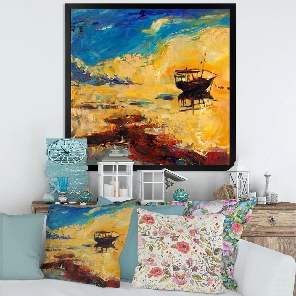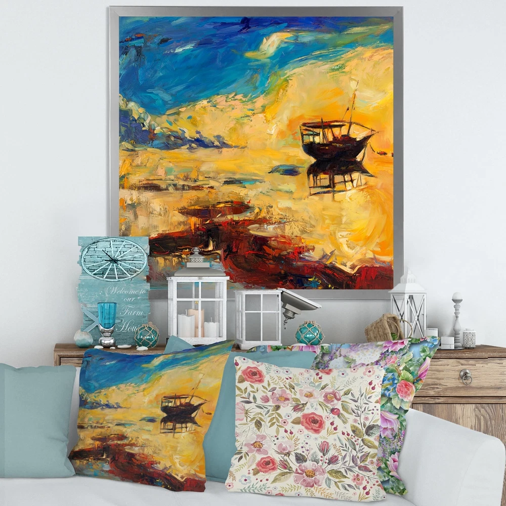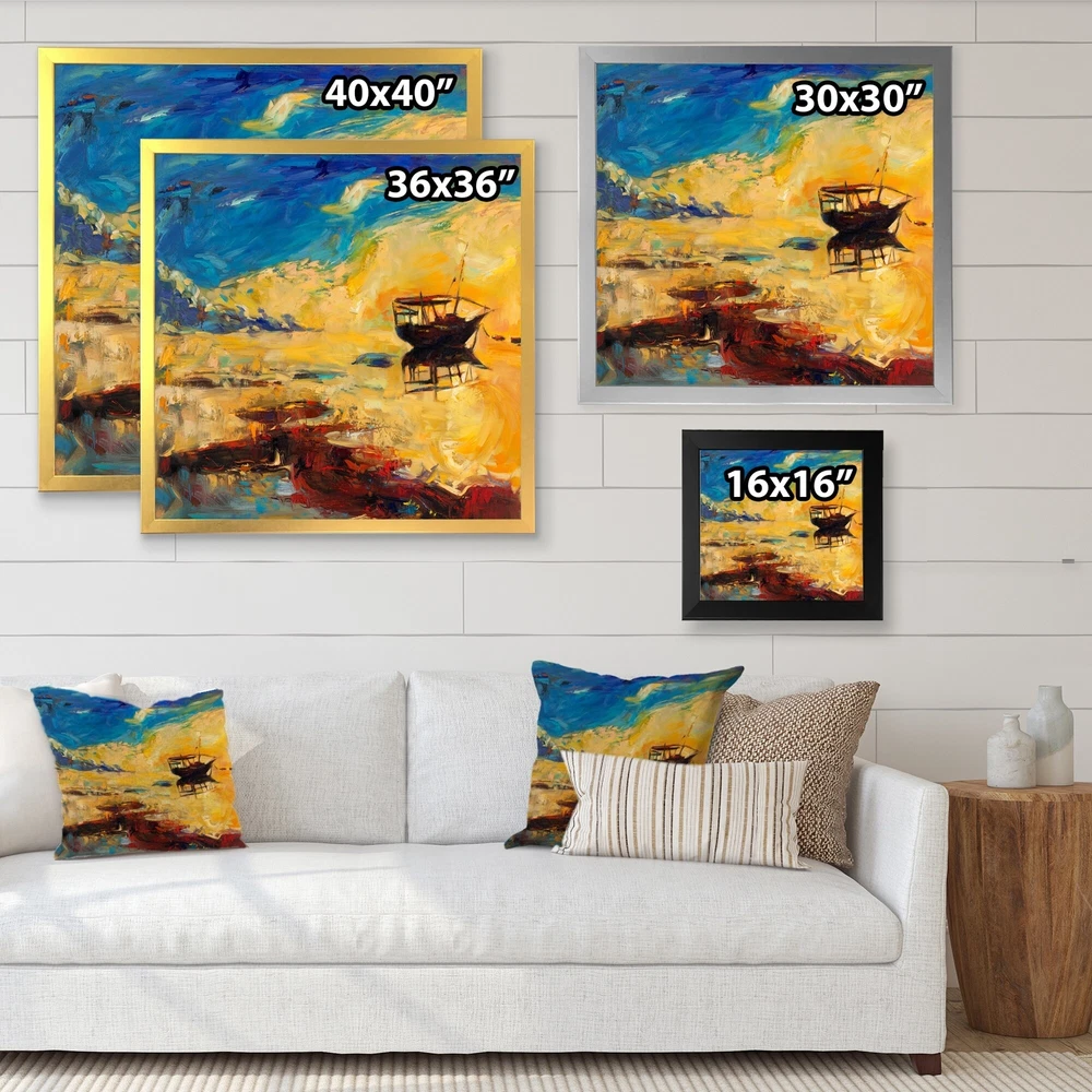 This beautiful Boat At The Ocean Horizon During Sunset Framed wall Art is printed using the highest quality fade resistant ink on canvas. Every one of our Framed Giclee Prints is printed on premium quality canvas, using the finest quality inks which will not fade over time and then mounted and framed on a 1.5 inch wide frame.This framed art print is available in many different color frames. All of our framed art prints are carefully packaged with corner protectors, fragile labeling, and sturdy boxes to ensure a safe delivery. Every framed art arrives ready to hang on the wall, with the hanging kit included.Features:- Style : Nautical & Coastal- Subject : Landscapes- Color : Yellow- Premium quality cotton canvas mounted.- Available in several frame colors. - Arrives with instructions and Free Shipping Over $49.99* Details Designart "Boat At The Ocean Horizon During Sunset" Nautical & Coastal Framed Product Description: This beautiful Boat At The Ocean Horizon During Sunset Framed wall Art is printed using the highest quality fade resistant ink on canvas. Every one of our Framed Giclee Prints is printed on premium quality canvas, using the finest quality inks which will not fade over time and then mounted and framed on a 1.5 inch wide frame. This framed art print is available in many different color frames. All of our framed art prints are carefully packaged with corner protectors, fragile labeling, and sturdy boxes to ensure a safe delivery. Every framed art arrives ready to hang on the wall, with the hanging kit included. Features: - Style Nautical & Coastal - Subject Landscapes - Color Yellow - Premium quality cotton canvas mounted. - Available in several frame colors. - Arrives with instructions and hanging kit