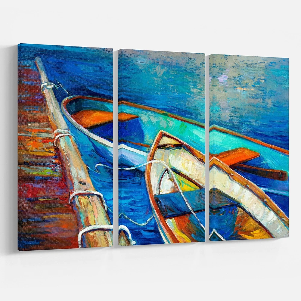 This beautiful Sea & Shore Canvas Art is printed using the highest quality fade resistant ink on canvas. Every one of our fine art giclee canvas prints is printed on premium quality cotton canvas, using the finest quality inks which will not fade over time. Each giclee print is stretched tightly over a 1 inch wood sub frame ensuring the canvas is taught and does not buckle. This canvas art print is gallery-wrapped (the design continues on the sides) , giving it a real art gallery feel. All of our canvas prints are carefully packaged with plastic protection, fragile labeling and sturdy boxes to ensure a safe delivery. Every canvas print arrives ready to hang on the wall, with the hanging kits included.- Style : Nautical & Coastal- Subject : Sea & Shore, Nautical- Color : Blue- This canvas Free Shipping Over $49.99* Details Designart "Boats and Pier in Blue Shade" Seascape Canvas Art Print - 36x28 - 3 Product Description: This beautiful Sea & Shore Canvas Art is printed using the highest quality fade resistant ink on canvas. Every one of our fine art giclee canvas prints is printed on premium quality cotton canvas, using the finest quality inks which will not fade over time. Each giclee print is stretched tightly over a 1 inch wood sub frame ensuring the canvas is taught and does not buckle. This canvas art print is gallery-wrapped (the design continues on the sides) , giving it a real art gallery feel. All of our canvas prints are carefully packaged with plastic protection, fragile labeling and sturdy boxes to ensure a safe delivery. Every canvas print arrives ready to hang on the wall, with the hanging kits included. - Style Nautical & Coastal - Subject Sea & Shore, Nautical - Color Blue - This canvas giclee print is gallery-wrapped (the design continues on the sides) , giving it a real art gallery feel. - Premium quality cotton canvas. - Arrives ready to hang on the wall - Easy to Hang