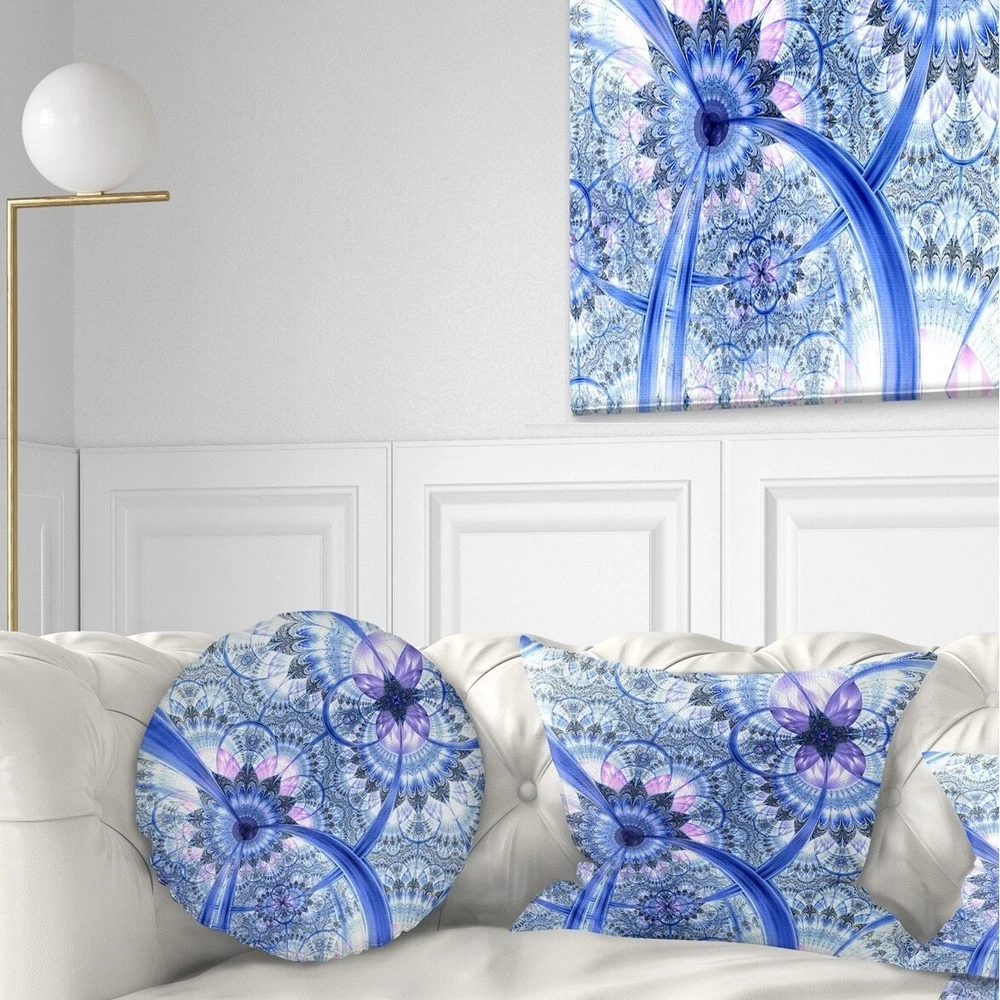 Decorative Throw Pillows for Couch Bed Sofa with Zip CoversAn easy, fun way to add a pop of color or bring new life to any room in your home or office is with these beautiful Floral throw pillows. Dress up your bed, sofa or lounger with this decorative design art pillows. Perfect as Farmhouse bedroom décor, lounge décor Traditional living room décor. It adds a fun accent to any room. Throw pillows really do work wonders: they can transform any room from uninviting discomfort to warm and welcoming. And they really do go almost anywhere - arrange a couple on the couch or sofa, place one in your overstuffed chair for extra coziness, toss a couple on the bed and prop yourself up for a great read.These Floral pillow is printed using High Color Density Italian inks to create a vibrantly colored, Free Shipping Over $49.99* Details Designart 'Bright Blue Fractal Floral Pattern' Floral Throw Pillow Product Description: Decorative Throw Pillows for Couch Bed Sofa with Zip Covers An easy, fun way to add a pop of color or bring new life to any room in your home or office is with these beautiful Floral throw pillows. Dress up your bed, sofa or lounger with this decorative design art pillows. Perfect as Farmhouse bedroom décor, lounge décor Traditional living room décor. It adds a fun accent to any room. Throw pillows really do work wondersthey can transform any room from uninviting discomfort to warm and welcoming. And they really do go almost anywhere - arrange a couple on the couch or sofa, place one in your overstuffed chair for extra coziness, toss a couple on the bed and prop yourself up for a great read. These Floral pillow is printed using High Color Density Italian inks to create a vibrantly colored, sharp artwork. Features: Perfect accent to any furniture piece Basic shapes with a modern graphic design twist Printed on 100% light weight polyester Cushion filled with 100% polyester fill Wrinkle resistant fabric Zip Closure so you can remove the pillow from its' cover Down-like comfort - Odorless 100% Hypoallergenic Machine Wash Cold Separately, Gently Cycle Only, No bleach, hang to dry Print on Demand with High Density Italian Ink Available in Several sizes Attribute :Farmhouse, Traditional, Modern Subject Floral, Landscapes, Country Charm