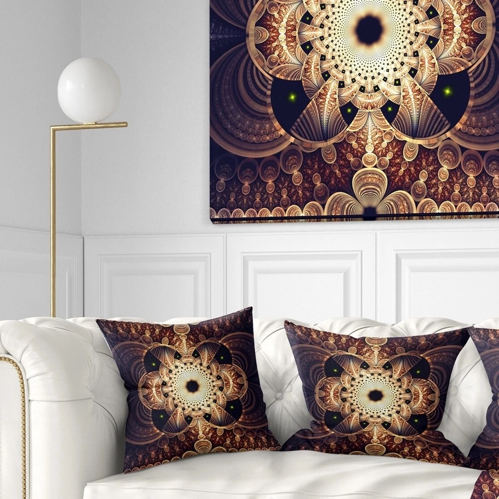 Decorative Throw Pillows for Couch Bed Sofa with Zip CoversAn easy, fun way to add a pop of color or bring new life to any room in your home or office is with these beautiful Floral throw pillows. Dress up your bed, sofa or lounger with this decorative design art pillows. Perfect as Farmhouse bedroom décor, lounge décor Traditional living room décor. It adds a fun accent to any room. Throw pillows really do work wonders: they can transform any room from uninviting discomfort to warm and welcoming. And they really do go almost anywhere - arrange a couple on the couch or sofa, place one in your overstuffed chair for extra coziness, toss a couple on the bed and prop yourself up for a great read.These Floral pillow is printed using High Color Density Italian inks to create a vibrantly colored, Free Shipping Over $49.99* Details Designart 'Brown Red Fractal Flower Pattern Digital' Floral Throw Pillow Product Description: Decorative Throw Pillows for Couch Bed Sofa with Zip Covers An easy, fun way to add a pop of color or bring new life to any room in your home or office is with these beautiful Floral throw pillows. Dress up your bed, sofa or lounger with this decorative design art pillows. Perfect as Farmhouse bedroom décor, lounge décor Traditional living room décor. It adds a fun accent to any room. Throw pillows really do work wondersthey can transform any room from uninviting discomfort to warm and welcoming. And they really do go almost anywhere - arrange a couple on the couch or sofa, place one in your overstuffed chair for extra coziness, toss a couple on the bed and prop yourself up for a great read. These Floral pillow is printed using High Color Density Italian inks to create a vibrantly colored, sharp artwork. Features: Perfect accent to any furniture piece Basic shapes with a modern graphic design twist Printed on 100% light weight polyester Cushion filled with 100% polyester fill Wrinkle resistant fabric Zip Closure so you can remove the pillow from its' cover Down-like comfort - Odorless 100% Hypoallergenic Machine Wash Cold Separately, Gently Cycle Only, No bleach, hang to dry Print on Demand with High Density Italian Ink Available in Several sizes Attribute :Farmhouse, Traditional, Modern Subject Floral, Landscapes, Country Charm