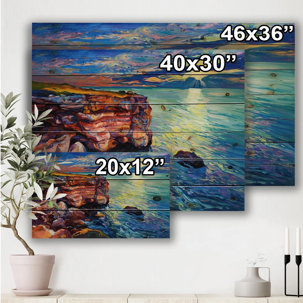 Alas, a modern take on wood wall art. Once typically a wall art piece found only in rustic or farmhouse style decor settings, this Beach wood wall art will easily fit into even the most contemporary of designs.Using the highest quality 6 Color Canon UV Ink, this Traditional wood wall art incorporates several aspects of fine design into one stunning piece. With its slightly visible wood grain appearing through the colors and sleekly finished edges, it is a wonderful choice for any room in your home or office, being it a traditional or modern space. As each piece of wood has natural grain differences from the next, each of these wood wall arts is a truly unique addition to your space.Each Wood wall art is 100% handmade in Canada on Natural pine wood, using the highest quality ink which will Free Shipping Over $49.99* Details Designart 'By The Cliffside Ocean View Impression' Traditional Print on Natural Product Description: Alas, a modern take on wood wall art. Once typically a wall art piece found only in rustic or farmhouse style decor settings, this Beach wood wall art will easily fit into even the most contemporary of designs. Using the highest quality 6 Color Canon UV Ink, this Traditional wood wall art incorporates several aspects of fine design into one stunning piece. With its slightly visible wood grain appearing through the colors and sleekly finished edges, it is a wonderful choice for any room in your home or office, being it a traditional or modern space. As each piece of wood has natural grain differences from the next, each of these wood wall arts is a truly unique addition to your space. Each Wood wall art is 100% handmade in Canada on Natural pine wood, using the highest quality ink which will not fade over time. Available in Differents sizes - OrientationHorizontal - SubjectBeach TypeWood Wall Art, Fine Art, Wood Fine Art, Print on Plaque - Arrives ready to hang on the wall with hanging kit included - MaterialMade with 100% natural pine wood - StyleTraditional - Number of Pieces1 - ColorBlue