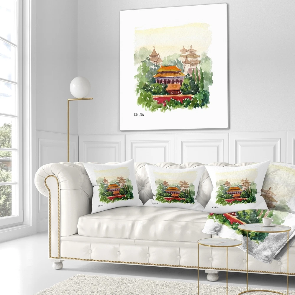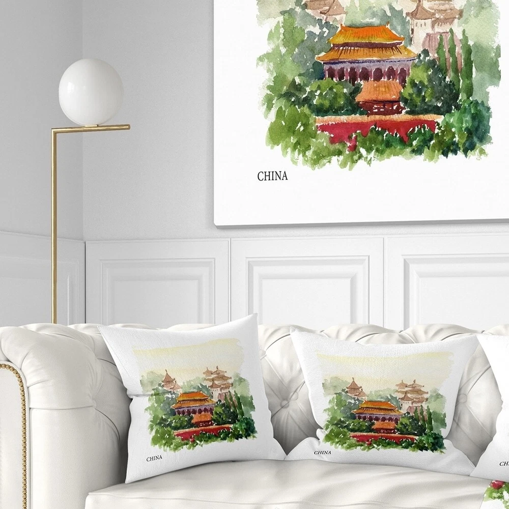 Decorative Throw Pillows for Couch Bed Sofa with Zip CoversAn easy, fun way to add a pop of color or bring new life to any room in your home or office is with these beautiful Landscape throw pillows. Dress up your bed, sofa or lounger with this decorative design art pillows. Perfect as Farmhouse bedroom décor, lounge décor Traditional living room décor. It adds a fun accent to any room. Throw pillows really do work wonders: they can transform any room from uninviting discomfort to warm and welcoming. And they really do go almost anywhere - arrange a couple on the couch or sofa, place one in your overstuffed chair for extra coziness, toss a couple on the bed and prop yourself up for a great read.These Landscapes pillow is printed using High Color Density Italian inks to create a vibrantly Free Shipping Over $49.99* Details Designart 'China Vector Illustration' Cityscape Throw Pillow Product Description: Decorative Throw Pillows for Couch Bed Sofa with Zip Covers An easy, fun way to add a pop of color or bring new life to any room in your home or office is with these beautiful Landscape throw pillows. Dress up your bed, sofa or lounger with this decorative design art pillows. Perfect as Farmhouse bedroom décor, lounge décor Traditional living room décor. It adds a fun accent to any room. Throw pillows really do work wondersthey can transform any room from uninviting discomfort to warm and welcoming. And they really do go almost anywhere - arrange a couple on the couch or sofa, place one in your overstuffed chair for extra coziness, toss a couple on the bed and prop yourself up for a great read. These Landscapes pillow is printed using High Color Density Italian inks to create a vibrantly colored, sharp artwork. Features: Perfect accent to any furniture piece Basic shapes with a modern graphic design twist Printed on 100% light weight polyester Cushion filled with 100% polyester fill Wrinkle resistant fabric Zip Closure so you can remove the pillow from its' cover Down-like comfort - Odorless 100% Hypoallergenic Machine Wash Cold Separately, Gently Cycle Only, No bleach, hang to dry Print on Demand with High Density Italian Ink Available in Several sizes Attribute :Farmhouse, Traditional, Fine Art Giclee Subject Landscapes, Country Charrm,