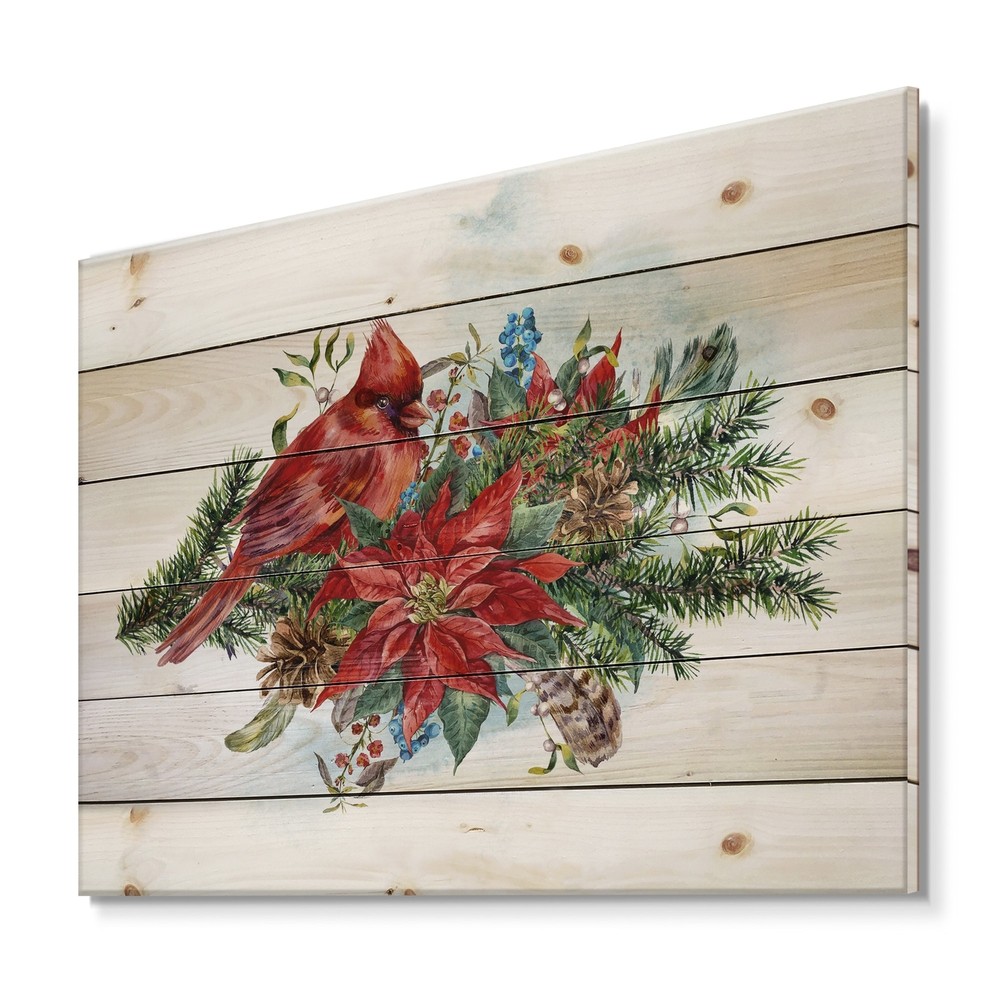 Alas, a modern take on wood wall art. Once typically a wall art piece found only in rustic or farmhouse style decor settings, this Animals wood wall art will easily fit into even the most contemporary of designs.Using the highest quality 6 Color Canon UV Ink, this Traditional wood wall art incorporates several aspects of fine design into one stunning piece. With its slightly visible wood grain appearing through the colors and sleekly finished edges, it is a wonderful choice for any room in your home or office, being it a traditional or modern space. As each piece of wood has natural grain differences from the next, each of these wood wall arts is a truly unique addition to your space.Each Wood wall art is 100% handmade in Canada on Natural pine wood, using the highest quality ink which Free Shipping Over $49.99* Details Designart 'Christmas Poinsettia and Red Cardinal Bird' Traditional Print on Product Description: Alas, a modern take on wood wall art. Once typically a wall art piece found only in rustic or farmhouse style decor settings, this Animals wood wall art will easily fit into even the most contemporary of designs. Using the highest quality 6 Color Canon UV Ink, this Traditional wood wall art incorporates several aspects of fine design into one stunning piece. With its slightly visible wood grain appearing through the colors and sleekly finished edges, it is a wonderful choice for any room in your home or office, being it a traditional or modern space. As each piece of wood has natural grain differences from the next, each of these wood wall arts is a truly unique addition to your space. Each Wood wall art is 100% handmade in Canada on Natural pine wood, using the highest quality ink which will not fade over time. Available in Differents sizes - OrientationHorizontal - SubjectAnimals TypeWood Wall Art, Fine Art, Wood Fine Art, Print on Plaque - Arrives ready to hang on the wall with hanging kit included - MaterialMade with 100% natural pine wood - StyleTraditional - Number of Pieces1 - ColorRed