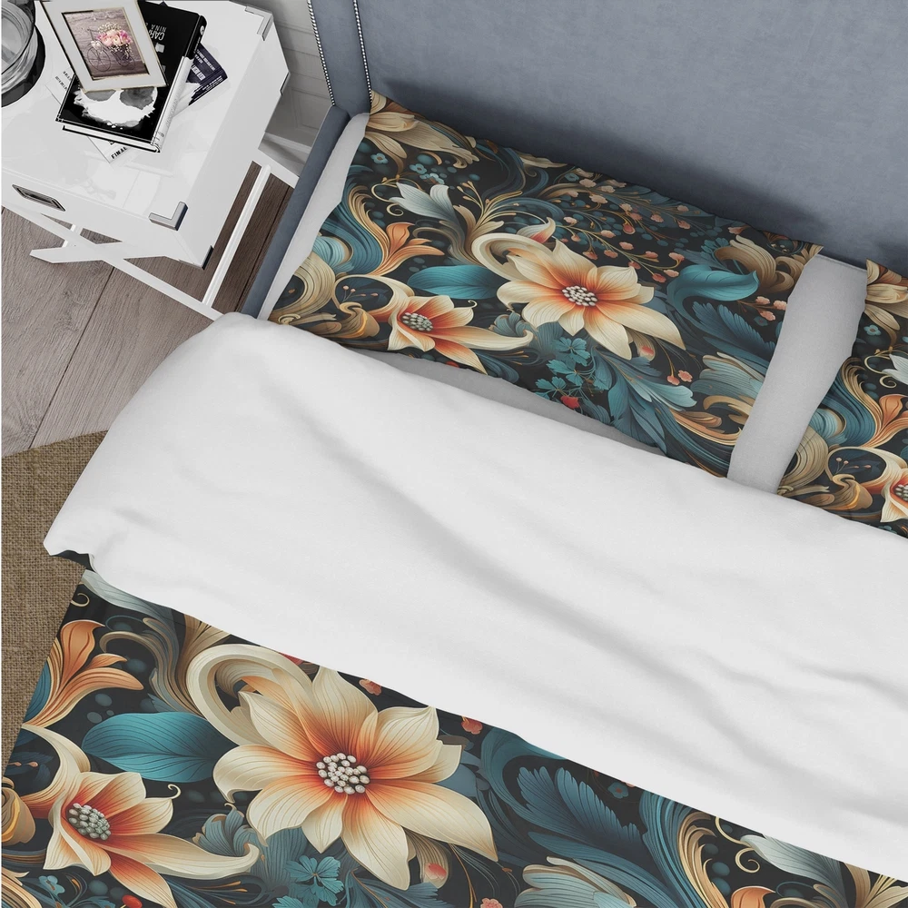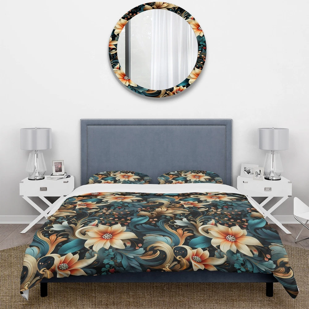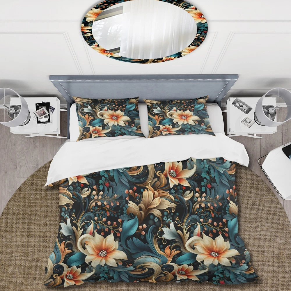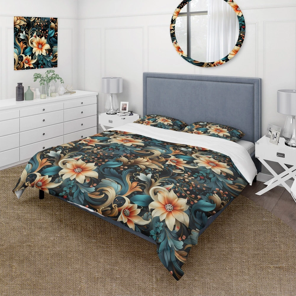 There is just nothing better than a beautiful, inviting comfortable bed after a long day. This Paisley, Floral bed set is created using the richest colors stemming from high density Italian ink and the softest fabrics making it the perfect way to spruce up your bedroom, while keeping it ultra-comfortable. This luxurious Classic Elegance Paisley Pattern II bed design is made with 100% microfiber polyester, making it ultra-soft to ensure you sleep comfortably all night long. This Bohemian & Eclectic set includes 1 Bed Cover and 2 Shams and is available in twin, queen and king sizes.This Bedding Set is easily integrated into your already decorated space.What's Included? - Duvet Cover - Shams - Pillow Cases not included but can be buy separately - Comforter Insert NOT Free Shipping Over $49.99* Details Designart "Classic Elegance Paisley Pattern II" paisley Bedding Set With Shams Product Description: There is just nothing better than a beautiful, inviting comfortable bed after a long day. This Paisley, Floral bed set is created using the richest colors stemming from high density Italian ink and the softest fabrics making it the perfect way to spruce up your bedroom, while keeping it ultra-comfortable. This luxurious Classic Elegance Paisley Pattern II bed design is made with 100% microfiber polyester, making it ultra-soft to ensure you sleep comfortably all night long. This Bohemian & Eclectic set includes 1 Bed Cover and 2 Shams and is available in twin, queen and king sizes. This Bedding Set is easily integrated into your already decorated space. What's Included? - Duvet Cover - Shams - Pillow Cases not included but can be buy separately - Comforter Insert NOT INCLUDED Features - Printed using High Density Italian Ink making the colors extra vibrant. - Made from ultra-soft, lightweight 100% microfiber polyester. Wrinkle resistant fabric. Down-like comfort, odorless. - The Bohemian & Eclectic bed set includes one bed cover and two standard pillow shams to create a complete and stylish look. - The elegant and soft colors are both trendy and fun to brighten and update your bedroom. - Made in Canada - Decorative Wall Art and throw pillows to match this set are available but sold separately. - Actual comforter inserts and pillow inserts are not included. This set includes the two pillow shams and comforter cover only. King Dimensions: - 1 Duvet Cover104 inches wide x 88 inches long - 2 King Shams20 inches wide x 36 inches long Queen Dimensions: - 1 Duvet Cover88 inches wide x 88 inches long - 2 Standard Shams16 inches wide x 26 inches long Twin Dimensions: - 1 Duvet Cover68 inches wide x 88 inches long - 1 Standard Sham16 inches wide x 26 inches long Product Details - MaterialPolyester. - PatternPaisley; Floral - ColorMulticolor - StyleBohemian & Eclectic; Glam - ReversibleNo Directions: Fabric Care InstructionsMachine wash on cold gentle cycle. Wash separately on first wash. Use only non- chlorine bleach when needed. Tumble dry low. Remove promptly.