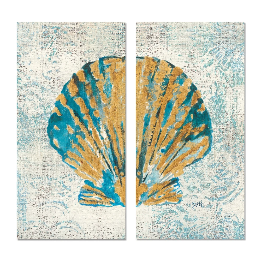 This beautiful Nautical & Coastal 2 piece set of Canvas Art is printed using the highest quality fade-resistant ink on canvas. Every one of our fine art giclee canvas prints is printed on premium quality cotton canvas, using the finest quality inks which will not fade over time. Each giclee print is stretched tightly over a 1-inch wood sub frame ensuring the canvas is taught and does not buckle. This canvas art print is gallery-wrapped (the design continues on the sides), giving it a real art gallery feel. All of our canvas prints are carefully packaged with plastic protection, fragile labeling, and sturdy boxes to ensure safe delivery. Every canvas print arrives ready to hang on the wall, with the hanging kits included.- Style : Nautical & Coastal- Subject : Beach, - Color : Blue- This Free Shipping Over $49.99* Details Designart "Coastal Pastel seashells I" Vintage Nautical Canvas Wall Art Print 2 Product Description: This beautiful Nautical & Coastal 2 piece set of Canvas Art is printed using the highest quality fade-resistant ink on canvas. Every one of our fine art giclee canvas prints is printed on premium quality cotton canvas, using the finest quality inks which will not fade over time. Each giclee print is stretched tightly over a 1-inch wood sub frame ensuring the canvas is taught and does not buckle. This canvas art print is gallery-wrapped (the design continues on the sides), giving it a real art gallery feel. All of our canvas prints are carefully packaged with plastic protection, fragile labeling, and sturdy boxes to ensure safe delivery. Every canvas print arrives ready to hang on the wall, with the hanging kits included. - Style Nautical & Coastal - Subject Beach, - Color Blue - This canvas giclee print is gallery-wrapped (the design continues on the sides), giving it a real art gallery feel. - Premium quality cotton canvas. - Arrives ready to hang on the wall - Easy to Hang