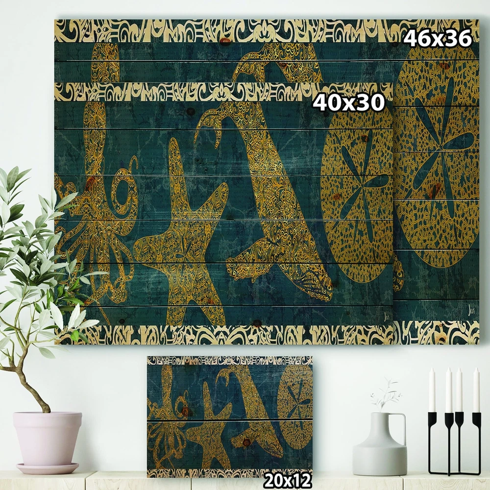 Alas, a modern take on wood wall art. Once typically a wall art piece found only in rustic or farmhouse style decor settings, this Animals wood wall art will easily fit into even the most contemporary of designs.Using the highest quality 6 Color Canon UV Ink, this Nautical & Coastal wood wall art incorporates several aspects of fine design into one stunning piece. With its slightly visible wood grain appearing through the colors and sleekly finished edges, it is a wonderful choice for any room in your home or office, being it a traditional or modern space. As each piece of wood has natural grain differences from the next, each of these wood wall arts is a truly unique addition to your space.Each Wood wall art is 100% handmade in Canada on Natural pine wood, using the highest quality ink Free Shipping Over $49.99* Details Designart 'Coastal Sea Life Seastar And Octopus' Nautical & Coastal Print on Product Description: Alas, a modern take on wood wall art. Once typically a wall art piece found only in rustic or farmhouse style decor settings, this Animals wood wall art will easily fit into even the most contemporary of designs. Using the highest quality 6 Color Canon UV Ink, this Nautical & Coastal wood wall art incorporates several aspects of fine design into one stunning piece. With its slightly visible wood grain appearing through the colors and sleekly finished edges, it is a wonderful choice for any room in your home or office, being it a traditional or modern space. As each piece of wood has natural grain differences from the next, each of these wood wall arts is a truly unique addition to your space. Each Wood wall art is 100% handmade in Canada on Natural pine wood, using the highest quality ink which will not fade over time. Available in Differents sizes - OrientationHORIZONTAL - SubjectAnimals TypeWood Wall Art, Fine Art, Wood Fine Art, Print on Plaque - Arrives ready to hang on the wall with hanging kit included - MaterialMade with 100% natural pine wood - StyleNautical & Coastal - Number of Pieces1 - ColorBlue