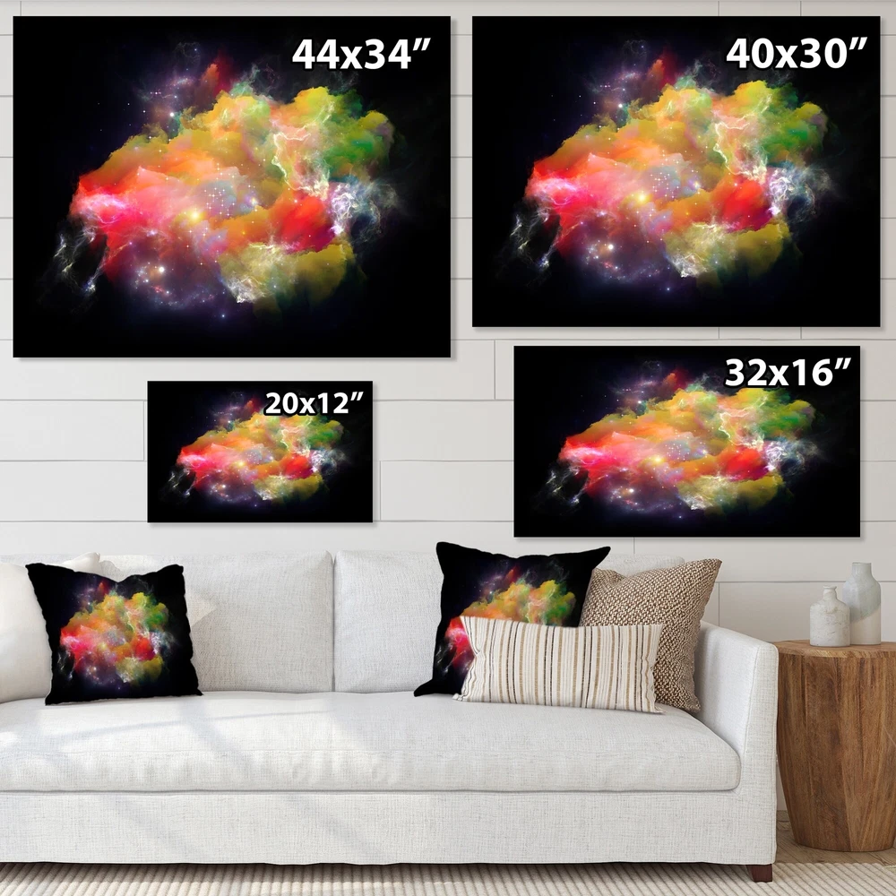 This beautiful Colorful Nebula Cosmic Flower Canvas Art is printed using the highest quality fade resistant ink on canvas. Every one of our fine art giclee canvas prints is printed on premium quality cotton canvas, using the finest quality inks which will not fade over time. Each giclee print is stretched tightly over a 1 inch wood sub frame for small size prints or a 1.5 inch wood sub frame for large size prints (40x30 60x28 ...) ensuring the canvas is taught and does not buckle. This canvas art print is gallery-wrapped (the design continues on the sides) , giving it a real art gallery feel. All of our canvas prints are carefully packaged with plastic protection, fragile labeling and sturdy boxes to ensure a safe delivery. Every canvas print arrives ready to hang on the wall, with the Free Shipping Over $49.99* Details Designart "Colorful Nebula Cosmic Flower" Modern Floral Canvas Wall Decor Product Description: This beautiful Colorful Nebula Cosmic Flower Canvas Art is printed using the highest quality fade resistant ink on canvas. Every one of our fine art giclee canvas prints is printed on premium quality cotton canvas, using the finest quality inks which will not fade over time. Each giclee print is stretched tightly over a 1 inch wood sub frame for small size prints or a 1.5 inch wood sub frame for large size prints (40x30 60x28 ...) ensuring the canvas is taught and does not buckle. This canvas art print is gallery-wrapped (the design continues on the sides) , giving it a real art gallery feel. All of our canvas prints are carefully packaged with plastic protection, fragile labeling and sturdy boxes to ensure a safe delivery. Every canvas print arrives ready to hang on the wall, with the hanging kits included. - Style Modern & Contemporary - Subject Floral, Abstract & Fractals,Abstract Botanicals - Color Multi-Color - This canvas giclee print is gallery-wrapped (the design continues on the sides) , giving it a real art gallery feel. - Premium quality cotton canvas. - Arrives ready to hang on the wall - Easy to Hang