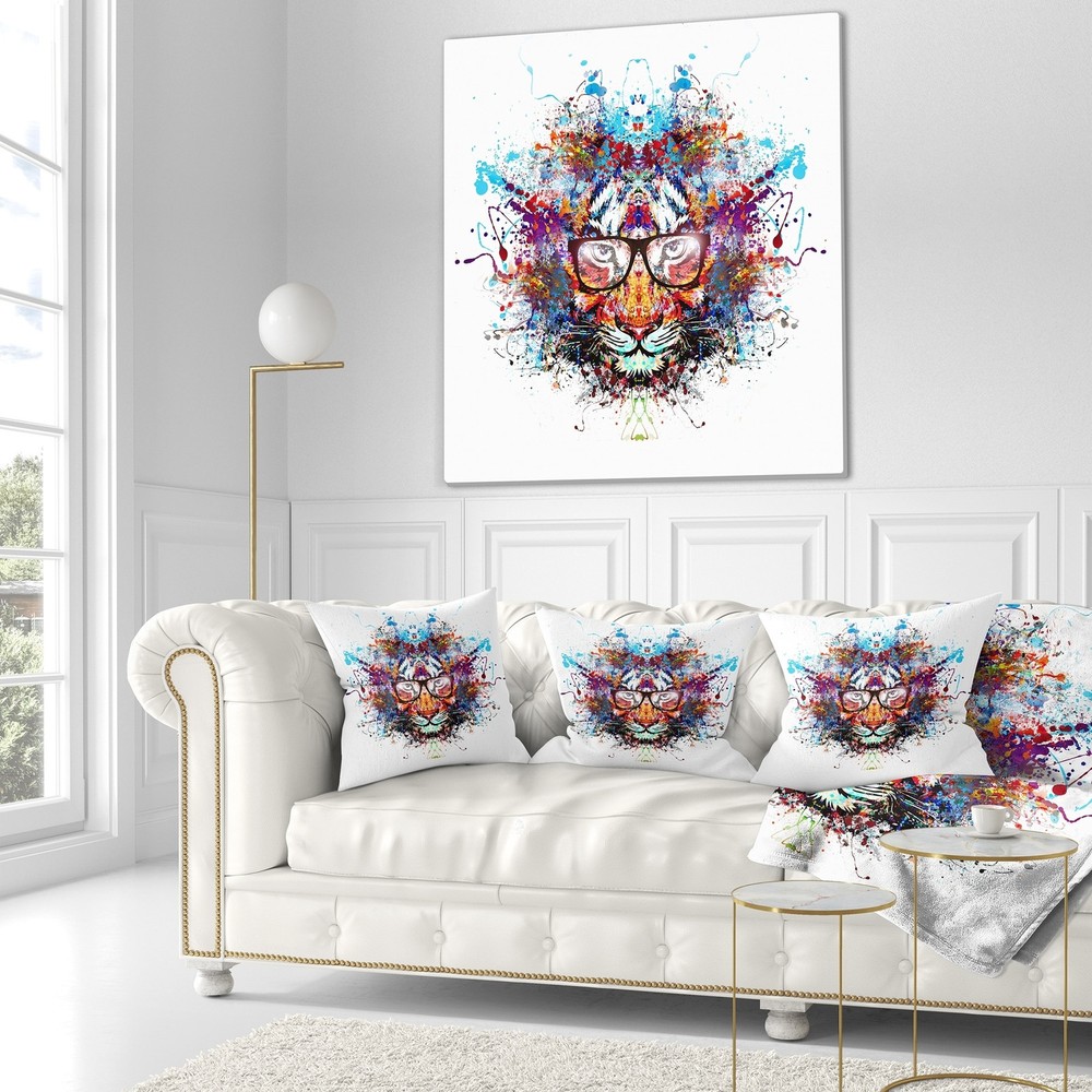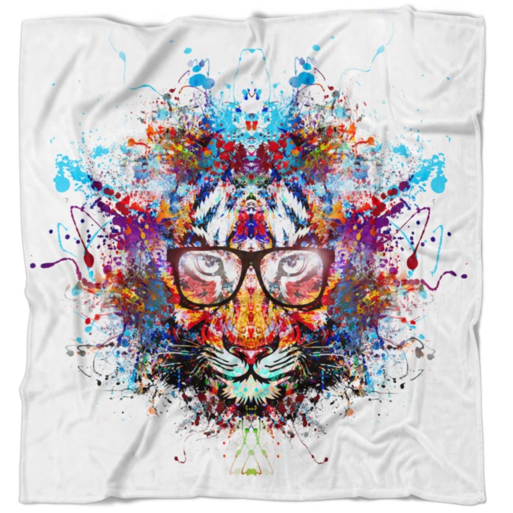 Designart 'Colorful Tiger in Glasses' Animal Throw Blanket White 59 in. x 71 in.