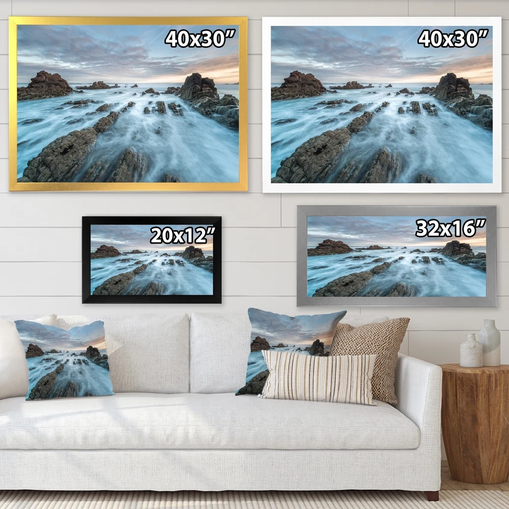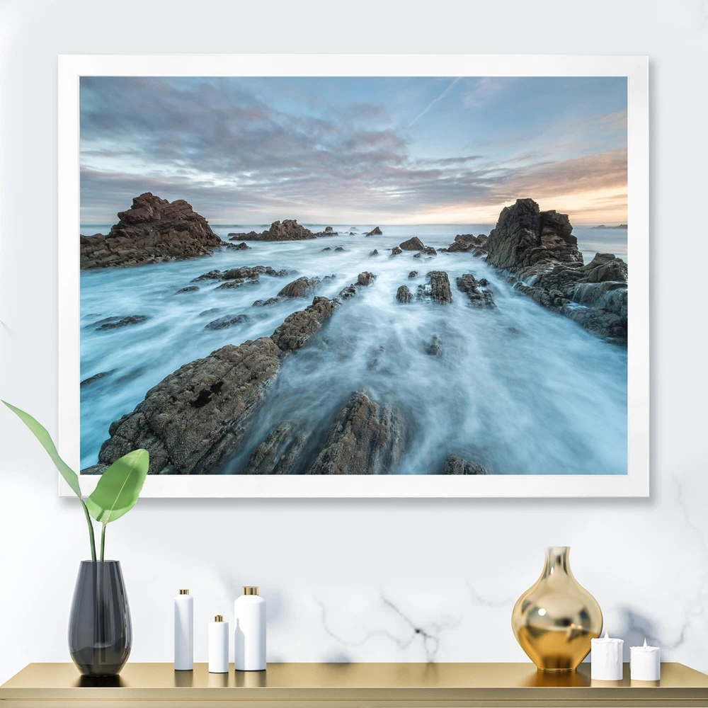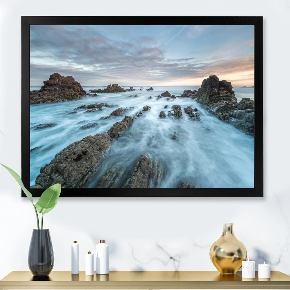 This beautiful Dawn On Beaches Of Asturias Framed wall Art is printed using the highest quality fade resistant ink on canvas. Every one of our Framed Giclee Prints is printed on premium quality canvas, using the finest quality inks which will not fade over time and then mounted and framed on a 1.5 inch wide frame.This framed art print is available in many different color frames. All of our framed art prints are carefully packaged with corner protectors, fragile labeling, and sturdy boxes to ensure a safe delivery. Every framed art arrives ready to hang on the wall, with the hanging kit included.Features:- Style : Nautical & Coastal- Subject : Beach- Color : Blue- Premium quality cotton canvas mounted.- Available in several frame colors. - Arrives with instructions and hanging kit Free Shipping Over $49.99* Details Designart "Dawn On Beaches Of Asturias" Nautical & Coastal Framed Art Print Product Description: This beautiful Dawn On Beaches Of Asturias Framed wall Art is printed using the highest quality fade resistant ink on canvas. Every one of our Framed Giclee Prints is printed on premium quality canvas, using the finest quality inks which will not fade over time and then mounted and framed on a 1.5 inch wide frame. This framed art print is available in many different color frames. All of our framed art prints are carefully packaged with corner protectors, fragile labeling, and sturdy boxes to ensure a safe delivery. Every framed art arrives ready to hang on the wall, with the hanging kit included. Features: - Style Nautical & Coastal - Subject Beach - Color Blue - Premium quality cotton canvas mounted. - Available in several frame colors. - Arrives with instructions and hanging kit