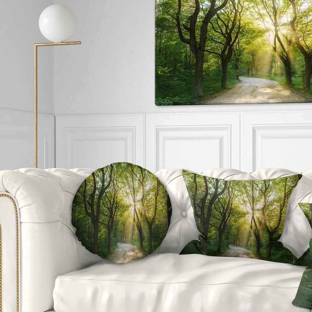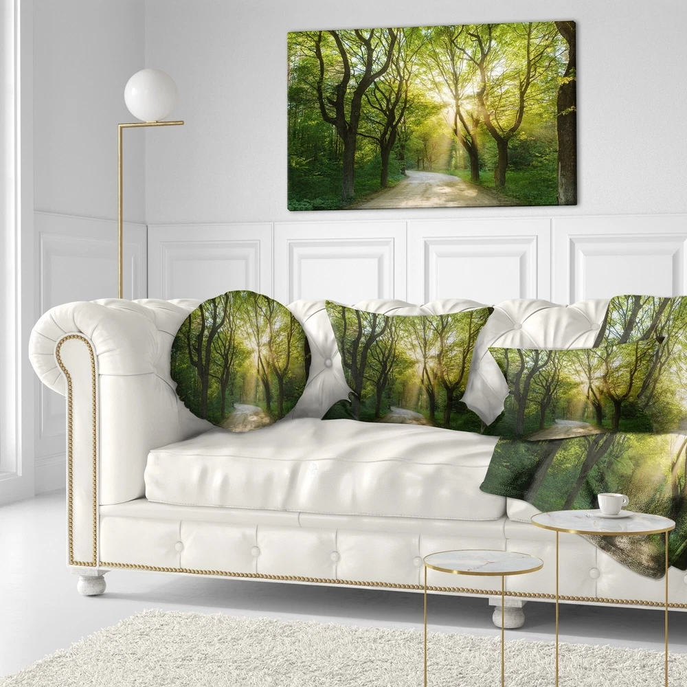 Decorative Throw Pillows for Couch Bed Sofa with Zip CoversAn easy, fun way to add a pop of color or bring new life to any room in your home or office is with these beautiful Landscape throw pillows. Dress up your bed, sofa or lounger with this decorative design art pillows. Perfect as Traditional bedroom décor, lounge décor Cottage living room décor. It adds a fun accent to any room. Throw pillows really do work wonders: they can transform any room from uninviting discomfort to warm and welcoming. And they really do go almost anywhere - arrange a couple on the couch or sofa, place one in your overstuffed chair for extra coziness, toss a couple on the bed and prop yourself up for a great read.These Landscapes pillow is printed using High Color Density Italian inks to create a vibrantly Free Shipping Over $49.99* Details Designart 'Evening in Green Forest' Landscape Printed Throw Pillow Product Description: Decorative Throw Pillows for Couch Bed Sofa with Zip Covers An easy, fun way to add a pop of color or bring new life to any room in your home or office is with these beautiful Landscape throw pillows. Dress up your bed, sofa or lounger with this decorative design art pillows. Perfect as Traditional bedroom décor, lounge décor Cottage living room décor. It adds a fun accent to any room. Throw pillows really do work wondersthey can transform any room from uninviting discomfort to warm and welcoming. And they really do go almost anywhere - arrange a couple on the couch or sofa, place one in your overstuffed chair for extra coziness, toss a couple on the bed and prop yourself up for a great read. These Landscapes pillow is printed using High Color Density Italian inks to create a vibrantly colored, sharp artwork. Features: Perfect accent to any furniture piece Basic shapes with a modern graphic design twist Printed on 100% light weight polyester Cushion filled with 100% polyester fill Wrinkle resistant fabric Zip Closure so you can remove the pillow from its' cover Down-like comfort - Odorless 100% Hypoallergenic Machine Wash Cold Separately, Gently Cycle Only, No bleach, hang to dry Print on Demand with High Density Italian Ink Available in Several sizes Attribute :Traditional, Cottage, Fine Art Giclee Subject Landscapes, Country Charm, Photography
