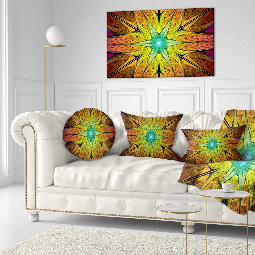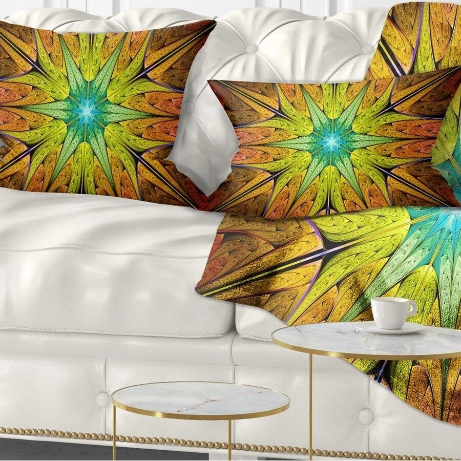 Decorative Throw Pillows for Couch Bed Sofa with Zip CoversAn easy, fun way to add a pop of color or bring new life to any room in your home or office is with these beautiful Abstract throw pillows. Dress up your bed, sofa or lounger with this decorative design art pillows. Perfect as Contemporary bedroom décor, lounge décor Modern living room décor. It adds a fun accent to any room. Throw pillows really do work wonders: they can transform any room from uninviting discomfort to warm and welcoming. And they really do go almost anywhere - arrange a couple on the couch or sofa, place one in your overstuffed chair for extra coziness, toss a couple on the bed and prop yourself up for a great read.These Abstract pillow is printed using High Color Density Italian inks to create a vibrantly Free Shipping Over $49.99* Details Designart 'Extraordinary Fractal Yellow Design' Abstract Throw Pillow Product Description: Decorative Throw Pillows for Couch Bed Sofa with Zip Covers An easy, fun way to add a pop of color or bring new life to any room in your home or office is with these beautiful Abstract throw pillows. Dress up your bed, sofa or lounger with this decorative design art pillows. Perfect as Contemporary bedroom décor, lounge décor Modern living room décor. It adds a fun accent to any room. Throw pillows really do work wondersthey can transform any room from uninviting discomfort to warm and welcoming. And they really do go almost anywhere - arrange a couple on the couch or sofa, place one in your overstuffed chair for extra coziness, toss a couple on the bed and prop yourself up for a great read. These Abstract pillow is printed using High Color Density Italian inks to create a vibrantly colored, sharp artwork. Features: Perfect accent to any furniture piece Basic shapes with a modern graphic design twist Printed on 100% light weight polyester Cushion filled with 100% polyester fill Wrinkle resistant fabric Zip Closure so you can remove the pillow from its' cover Down-like comfort - Odorless 100% Hypoallergenic Machine Wash Cold Separately, Gently Cycle Only, No bleach, hang to dry Print on Demand with High Density Italian Ink Available in Several sizes Attribute :Contemporary, Modern, Transitional Subject Abstract, Impressionism, Geometric