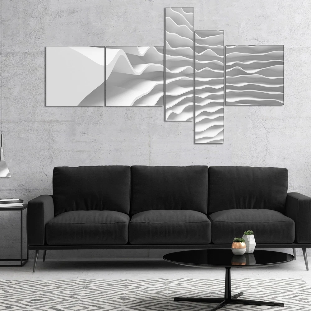 This beautiful Abstract Canvas Art is printed using the highest quality fade resistant ink on canvas. Every one of our fine art giclee canvas prints is printed on premium quality cotton canvas, using the finest quality inks which will not fade over time. Each giclee print is stretched tightly over a 1 inch wood sub frame ensuring the canvas is taught and does not buckle. This canvas art print is gallery-wrapped (the design continues on the sides) , giving it a real art gallery feel. All of our canvas prints are carefully packaged in inflated cushion wrap, fragile labeling and sturdy boxes to ensure a safe delivery. Every canvas print arrives ready to hang on the wall, with the hanging kits includedShape: RectangleOrientation: HorizontalSubject: AbstractStyle: Contemporary, Fine Art Giclee, Free Shipping Over $49.99* Details Designart "Fractal Curved White 3D Waves" Abstract Canvas Art Print Product Description: This beautiful Abstract Canvas Art is printed using the highest quality fade resistant ink on canvas. Every one of our fine art giclee canvas prints is printed on premium quality cotton canvas, using the finest quality inks which will not fade over time. Each giclee print is stretched tightly over a 1 inch wood sub frame ensuring the canvas is taught and does not buckle. This canvas art print is gallery-wrapped (the design continues on the sides) , giving it a real art gallery feel. All of our canvas prints are carefully packaged in inflated cushion wrap, fragile labeling and sturdy boxes to ensure a safe delivery. Every canvas print arrives ready to hang on the wall, with the hanging kits included ShapeRectangle OrientationHorizontal SubjectAbstract StyleContemporary, Fine Art Giclee, Modern SizeOversized