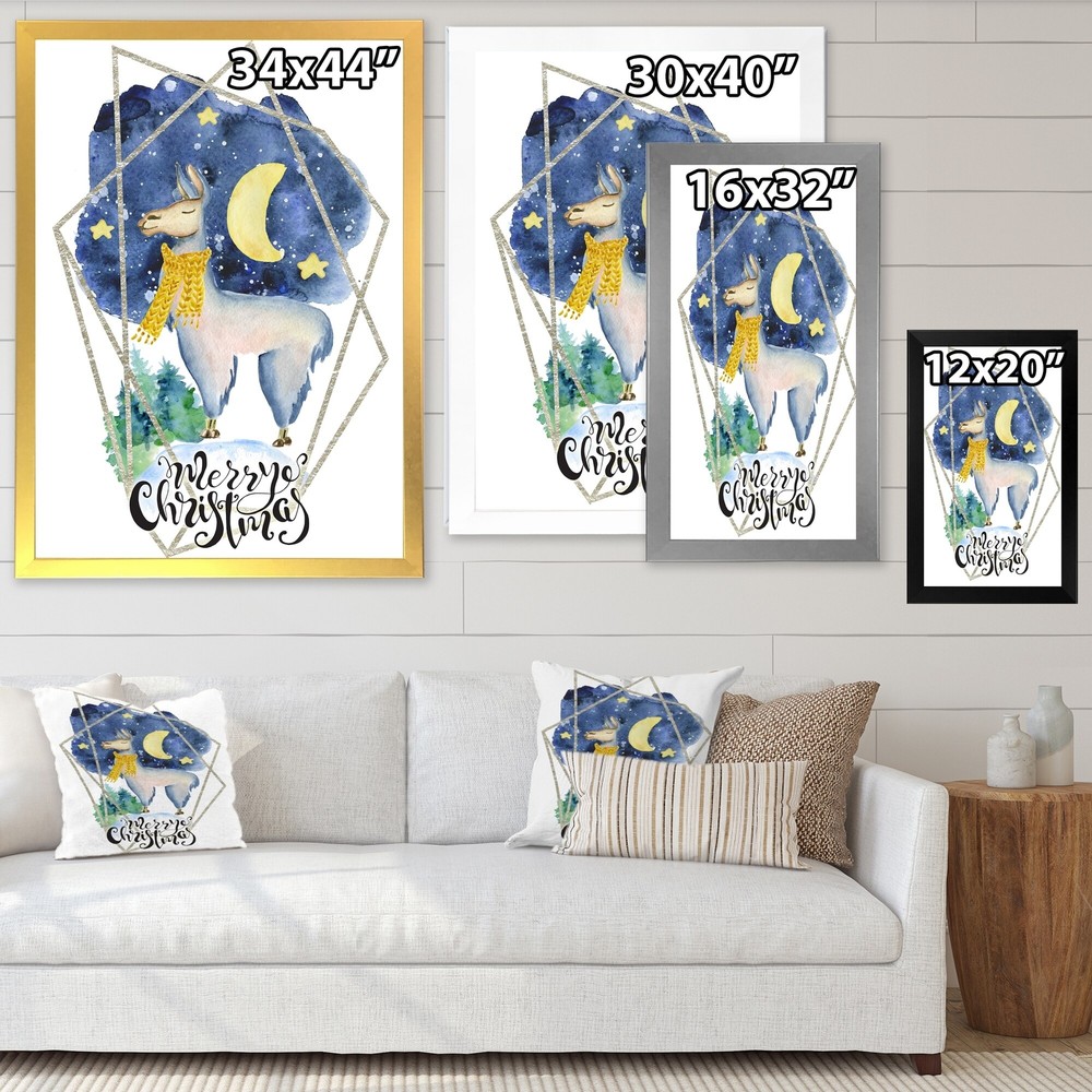 This beautiful Cute Christmas Llama Framed wall Art is printed using the highest quality fade resistant ink on canvas. Every one of our Framed Giclee Prints is printed on premium quality canvas, using the finest quality inks which will not fade over time and then mounted and framed on a 1.5 inch wide frame.This framed art print is available in many different color frames. All of our framed art prints are carefully packaged with corner protectors, fragile labeling, and sturdy boxes to ensure a safe delivery. Every framed art arrives ready to hang on the wall, with the hanging kit included.Features:- Style : Children's Art- Subject : Animals, Animals,Llama- Color : Blue- Premium quality cotton canvas mounted.- Available in several frame colors. - Arrives with instructions and hanging kit Free Shipping Over $49.99* Details Designart "Cute Christmas Llama" Children's Art Framed artwork Product Description: This beautiful Cute Christmas Llama Framed wall Art is printed using the highest quality fade resistant ink on canvas. Every one of our Framed Giclee Prints is printed on premium quality canvas, using the finest quality inks which will not fade over time and then mounted and framed on a 1.5 inch wide frame. This framed art print is available in many different color frames. All of our framed art prints are carefully packaged with corner protectors, fragile labeling, and sturdy boxes to ensure a safe delivery. Every framed art arrives ready to hang on the wall, with the hanging kit included. Features: - Style Children's Art - Subject Animals, Animals,Llama - Color Blue - Premium quality cotton canvas mounted. - Available in several frame colors. - Arrives with instructions and hanging kit